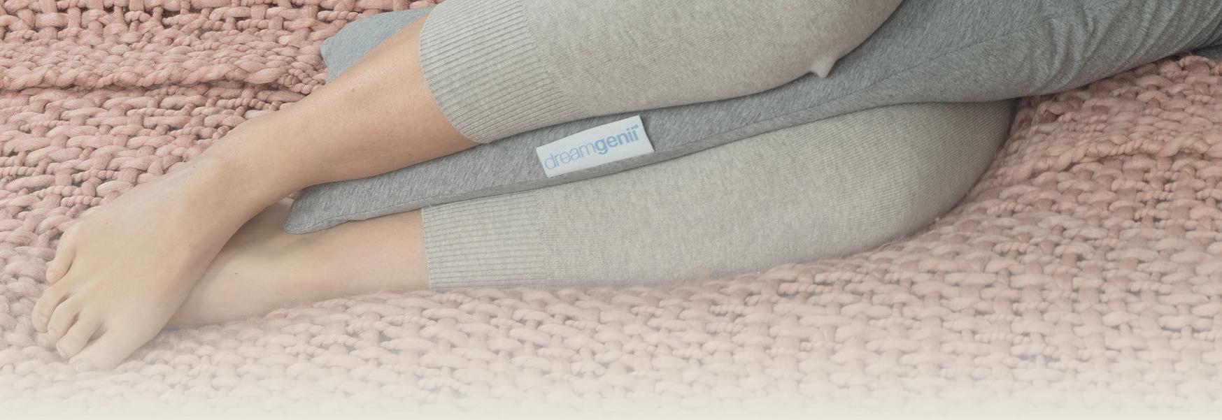 Supporting the back, bump and knees, the unique sh ape of the Dreamgenii® Pregnancy Support and Feeding Pillow encoura ges mumto-be to sl eep on her l eft side - now with snuggl y soft jerse y covers!