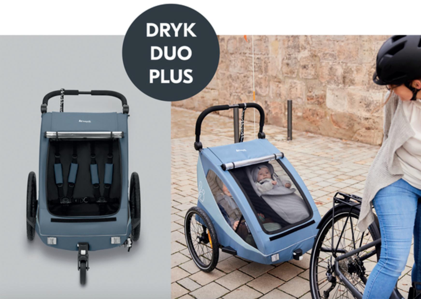 The hauck Dryk Duo Plus is a versatile bike trailer that quickly transforms into a pushchair and easily attaches to your bike.