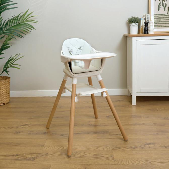Its easy-to-clean surface makes post-mealtime messes simple to manage, saving time for busy parents. Made from highquality materials like faux leather and beech wood, it o ers both durability and style. At a budget friendly £89.99 RRP, this is the ideal option for all families.