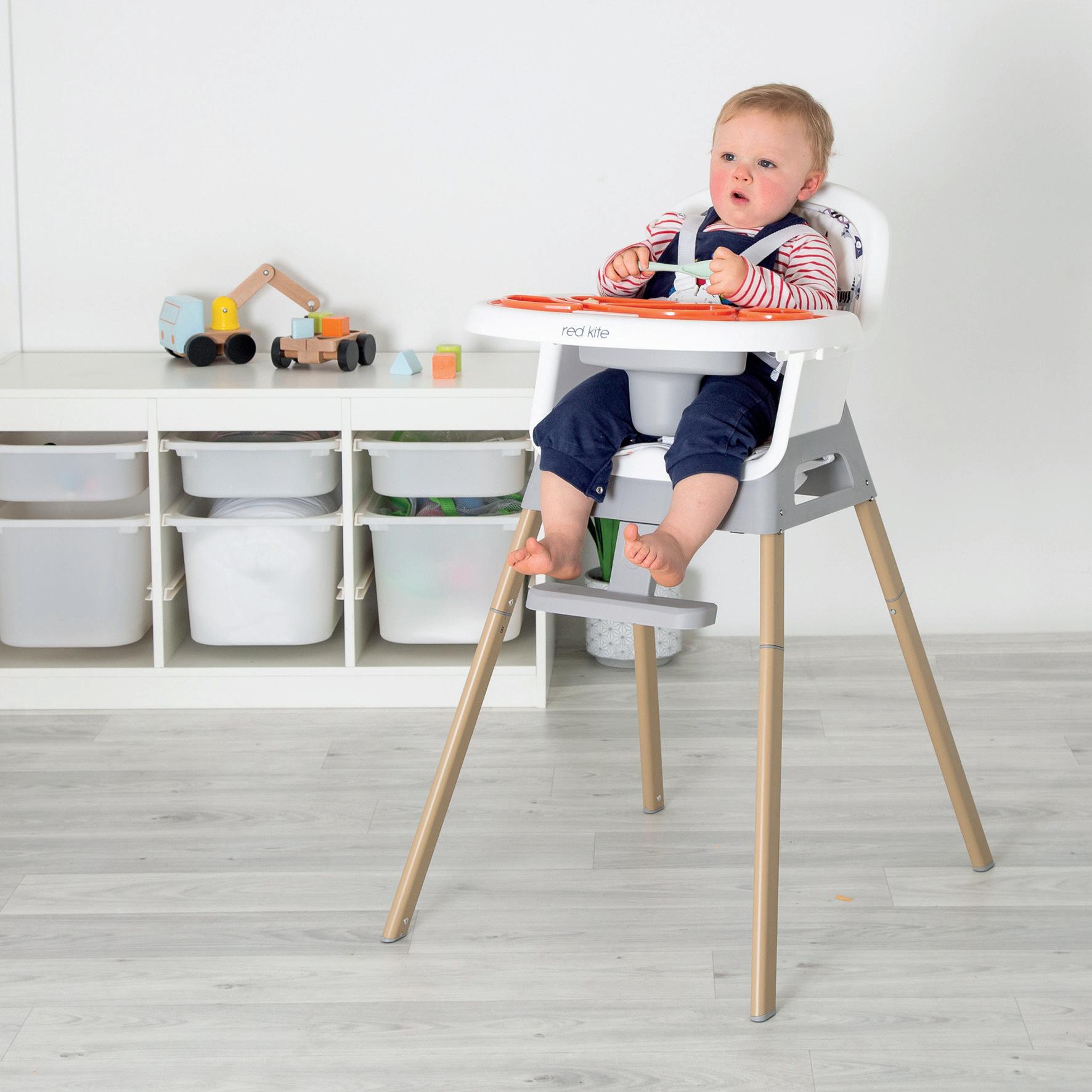 Use as a highchair, lo chair, toddler chair or booster seat! Featuring a large feeding tray with detachable inset tray which is ideal for baby led weaning and is easy to remove for cleaning and has three adjustable positions for baby’s comfort with large removeable footrest. sales@redkitebaby.com www.redkitebaby.co.uk