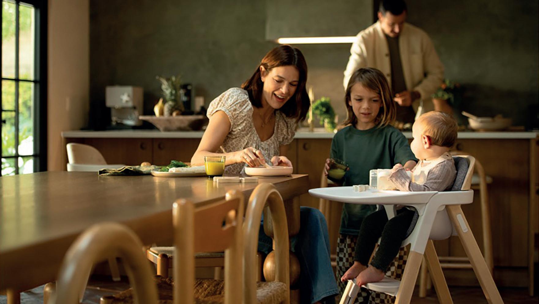 The multi-position recline creates a cosy chair to cradle baby comfortably. In booster mode, the seat can be attached easily to a dining chair, allowing little one to be included in family mealtimes. uksales@joiebaby.com www.joiebaby.com