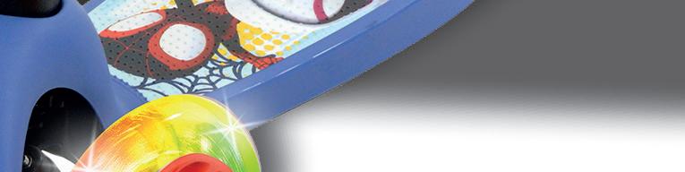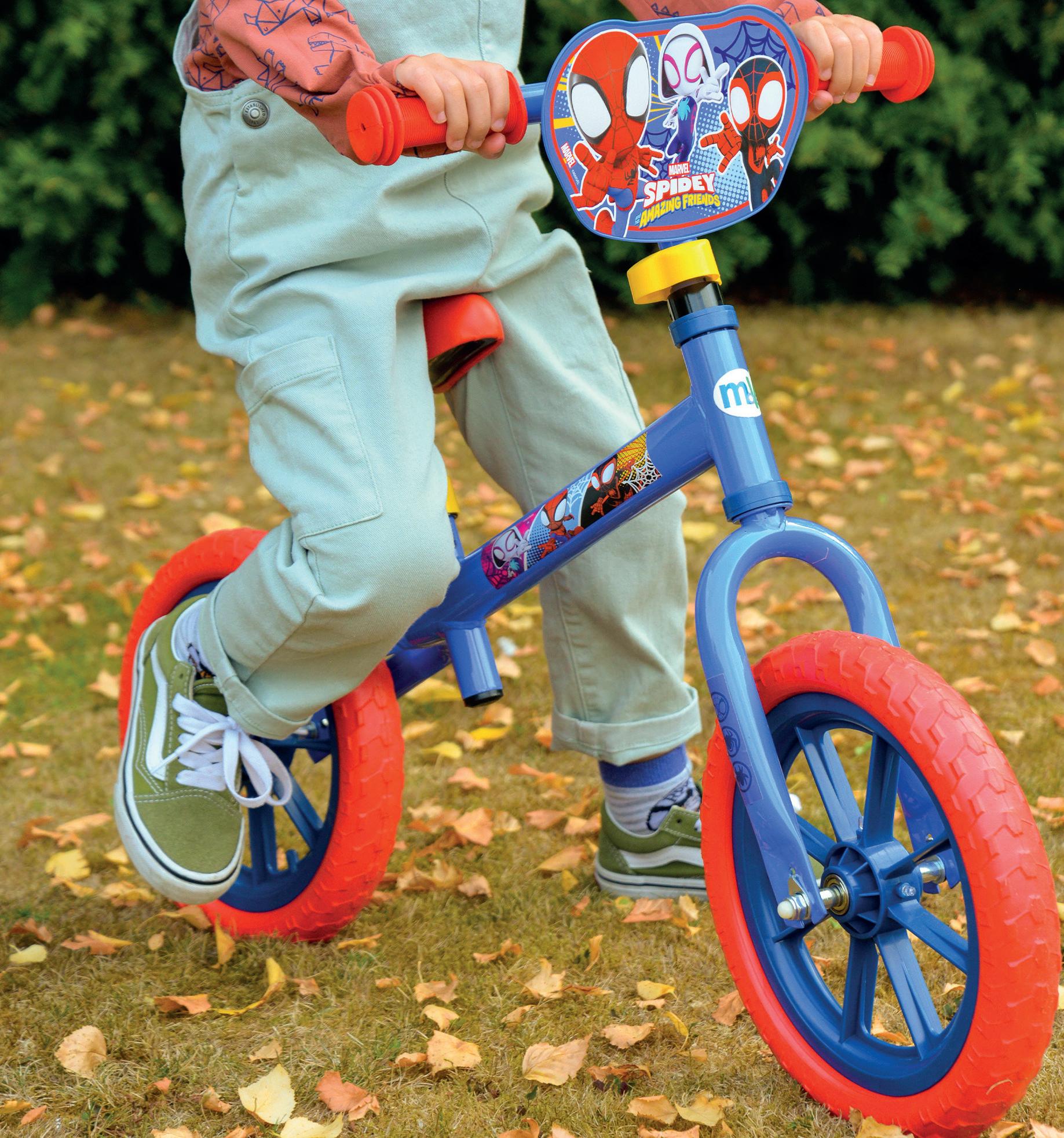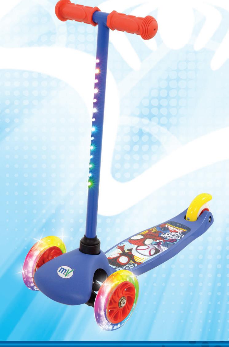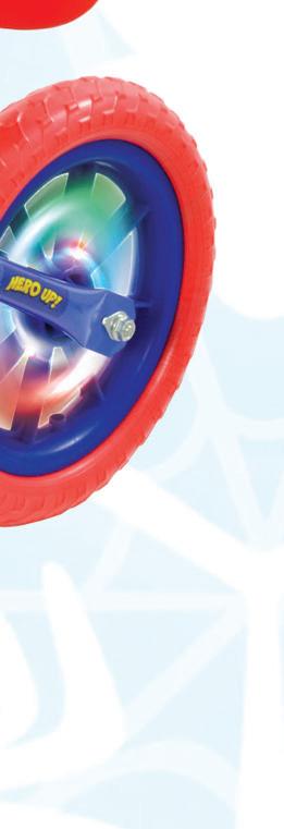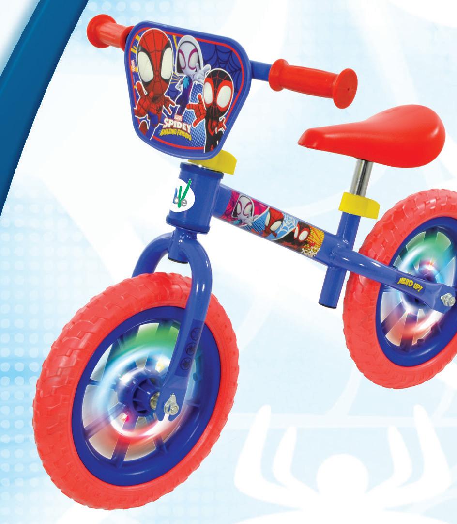 first ride designed for little adventurers finding their feet. Motion activated multi coloured wheels create an eye-catching glow that instantly draws attention both in store and online, while the lightweight frame and adjustable seat and handlebar heights make it an easy choice for growing riders. Bold character graphics and a shaped plaque bring familiar on- screen moments into everyday play, turning first rides into superhero missions.