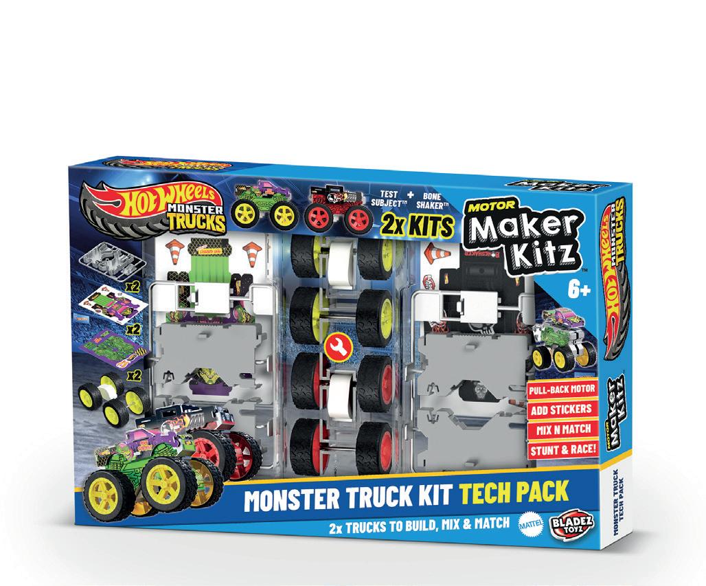 The action continues with the Mini Maker Kitz Monster Trucks Tech Pack, bringing double the fun with an iconic duo of