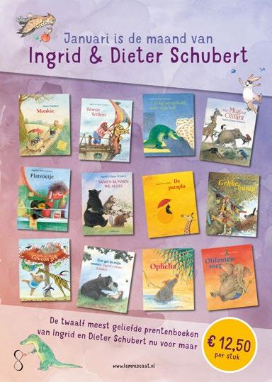 De twaalf meest geliefde prentenboeken van Ingrid en Dieter Schubert zijn de hele maand januari verkrijgbaar voor maar € 12,50! Onderstaande A1-poster bestel je gratis via promo-lemniscaat.nl.