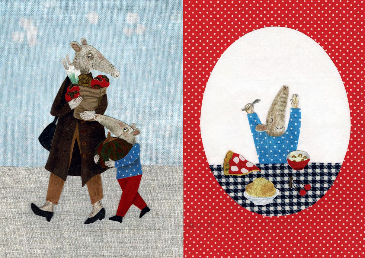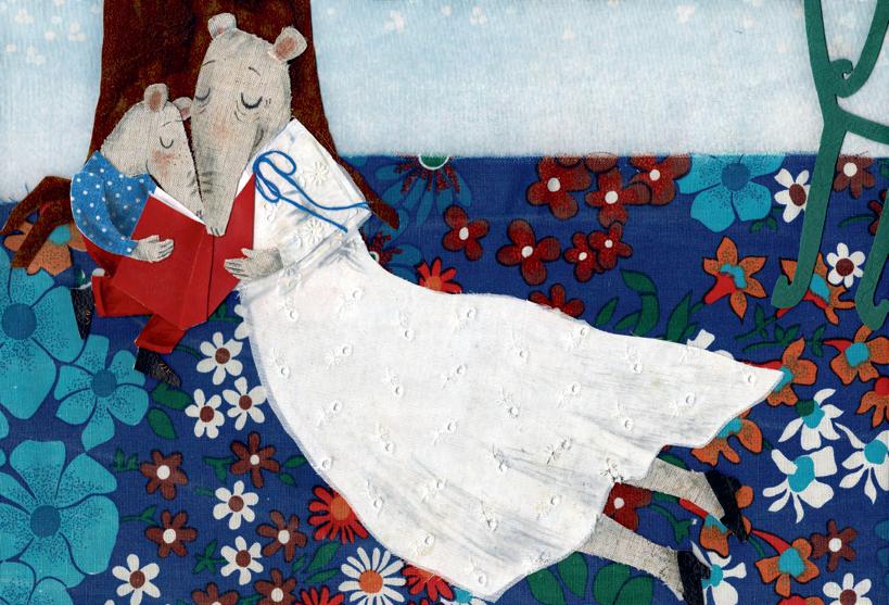 Sarah Hand ‘s illustrations are very joyful — evoking a smile from the reader. The use of collage and mixed media in the pictures is brilliantly composed and playful. The illustrations with their charming characters are engaging and could be also inspiring to any child (or even an adult!) who would like to pick up a pencil, glue and scissors and have a go at storytelling themselves.