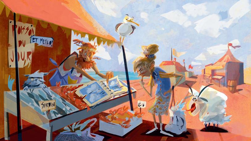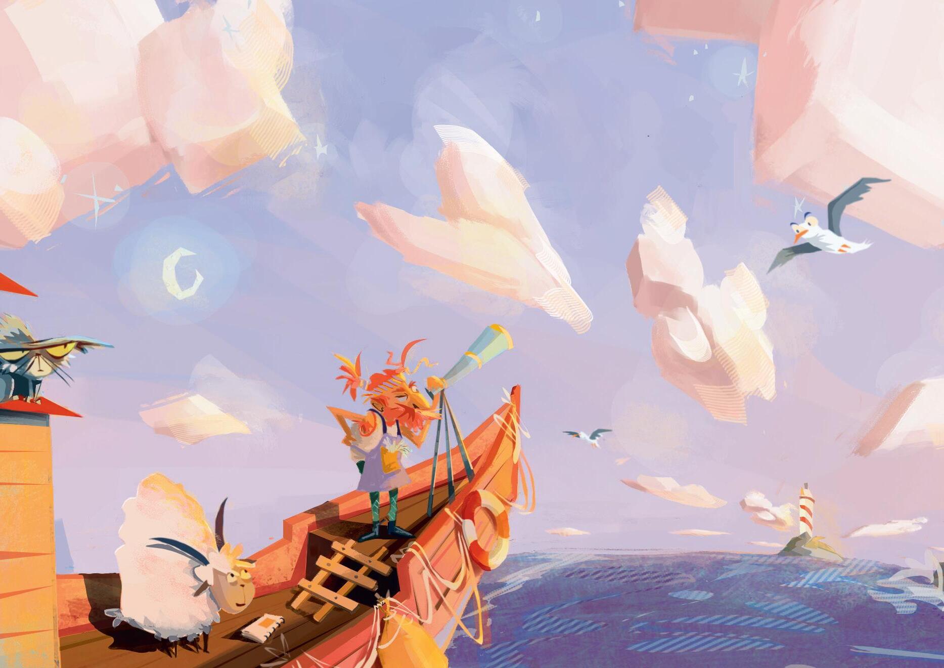 The somewhat messy-looking fisherman goes out to sea with his friends Cat and Sheep to catch fish. The fact that a sheep joins them at sea is immediately funny . And the fact that the fisherman