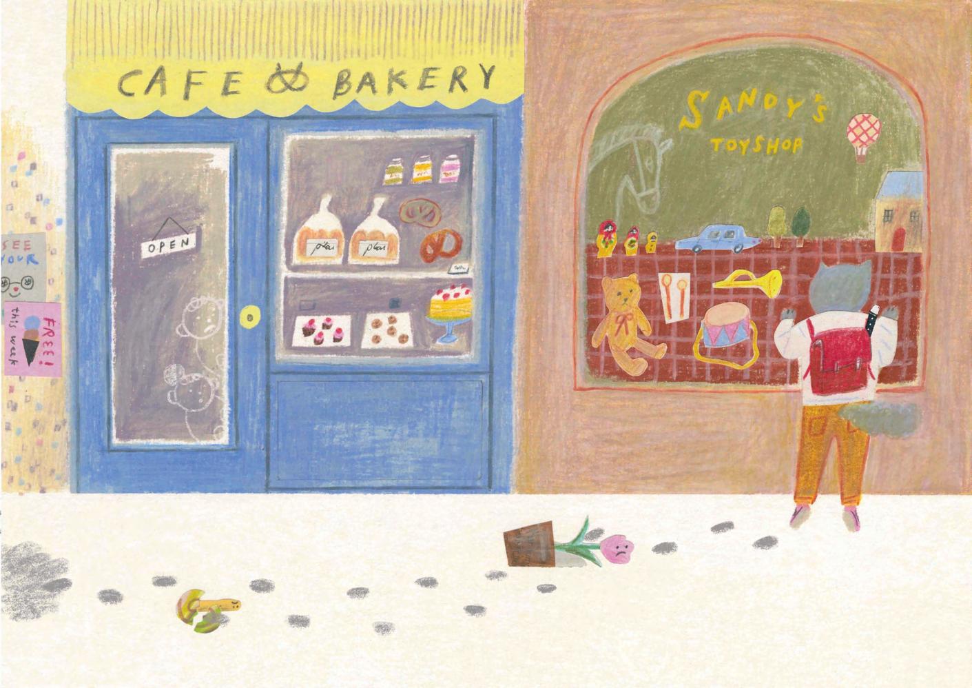 as a gift, she excitedly agrees. But already on the first flight of stairs her previous excitement of sharing her creations turns into worry. What if her cream puffs aren’t good enough? What if her neighbours won’t like her? Anxiety kicks in and Lily stops in her tracks while she imagines meeting intimidating monsters