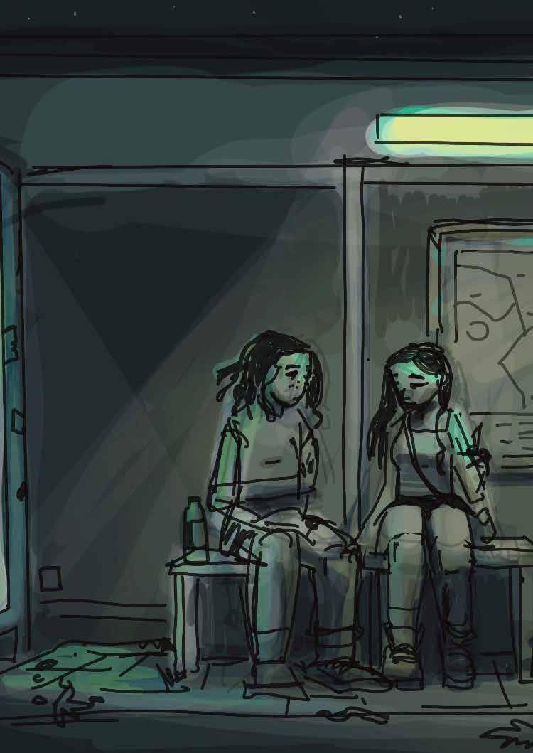 might see the bruises and get angry, but mostly because home means sleep, and sleep means waking up to another school day where the same bullies roam free. Her biggest reason for staying is Larissa—a girl smaller than her, but huge in her heart. Someone who understands and cares for her, even in the cold night. In a later scene,
