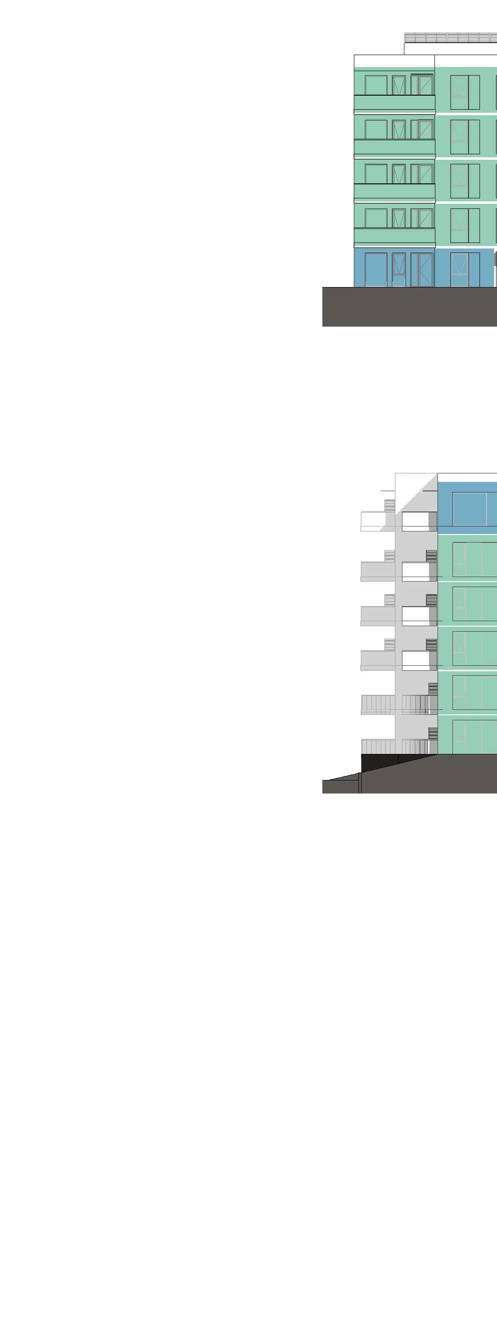 Med valgt fasadematerial og volumoppdeling håper vi på å skape en fin og kontrasterende overgang fra nabobebyggelsen Sjøtunet og Lervigpynten nord for Kanaltunet.