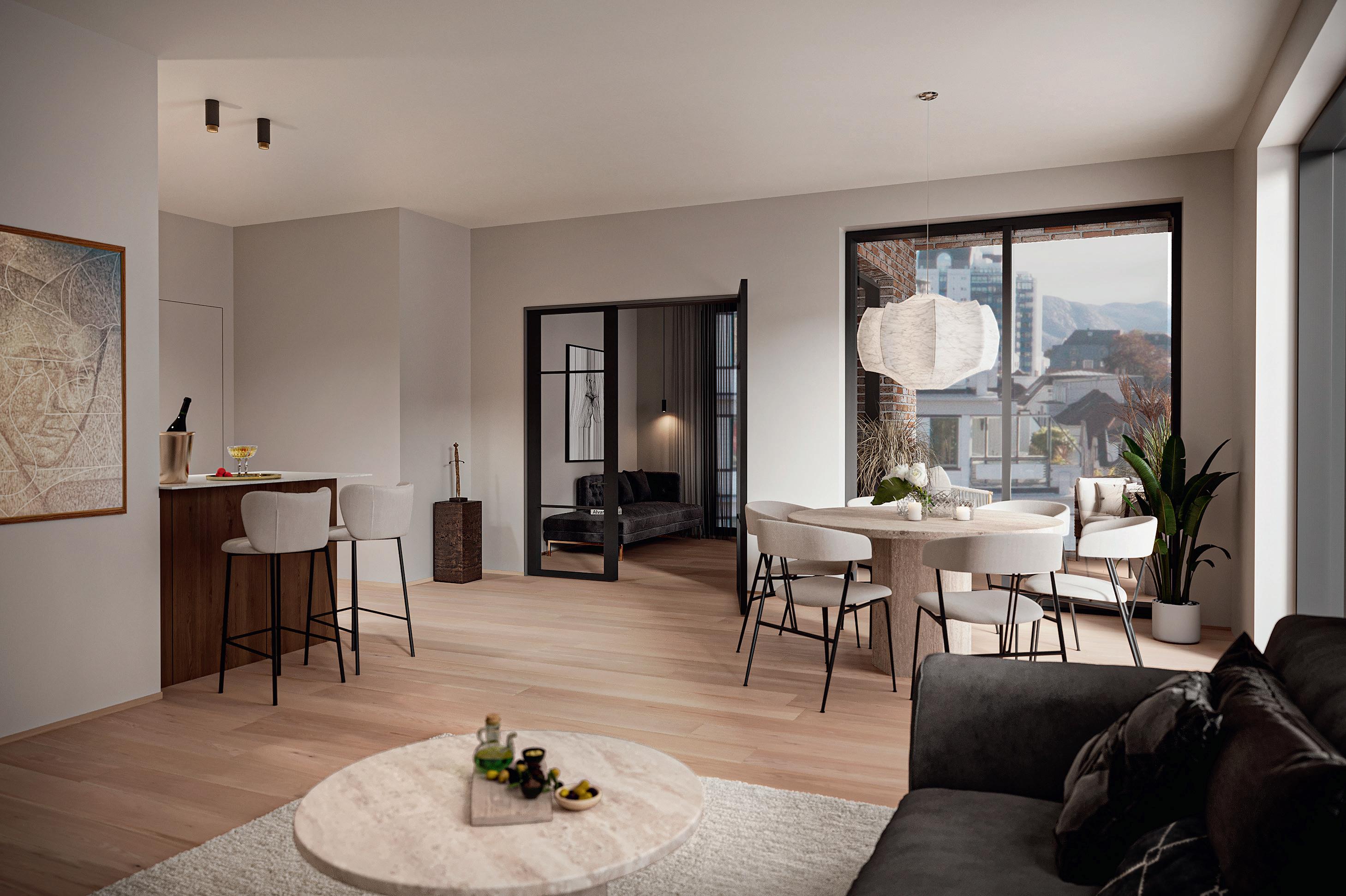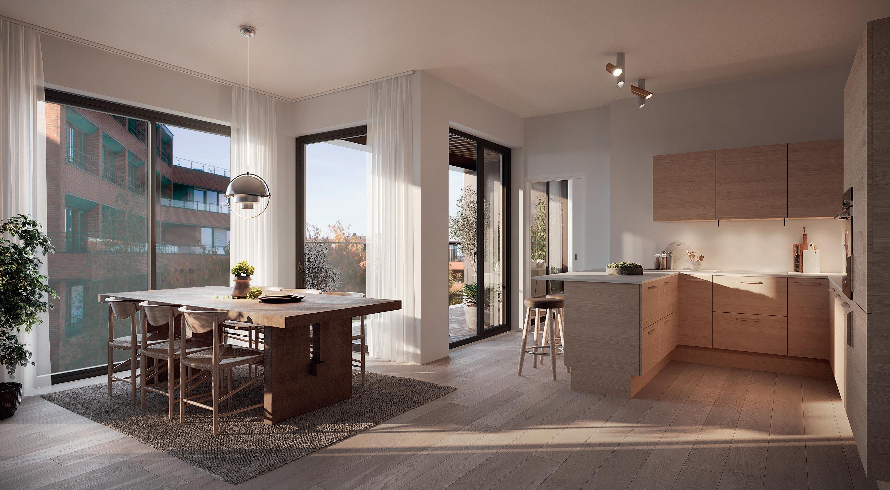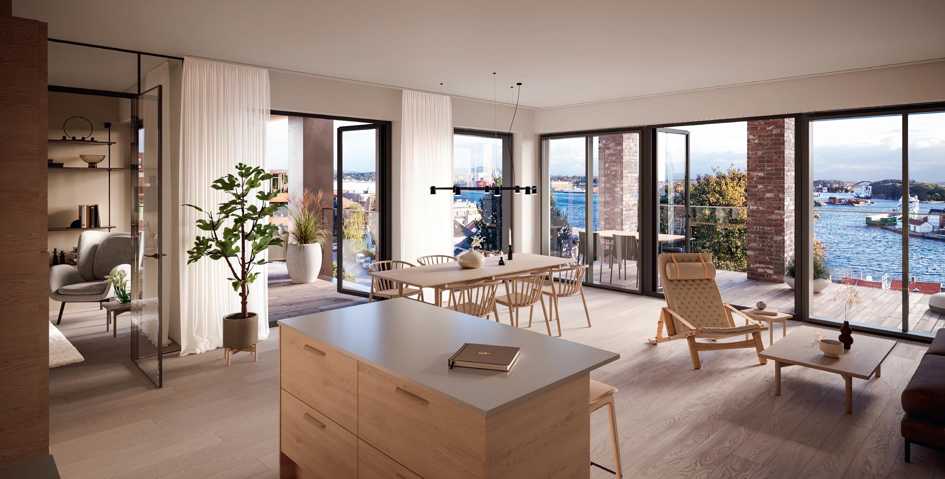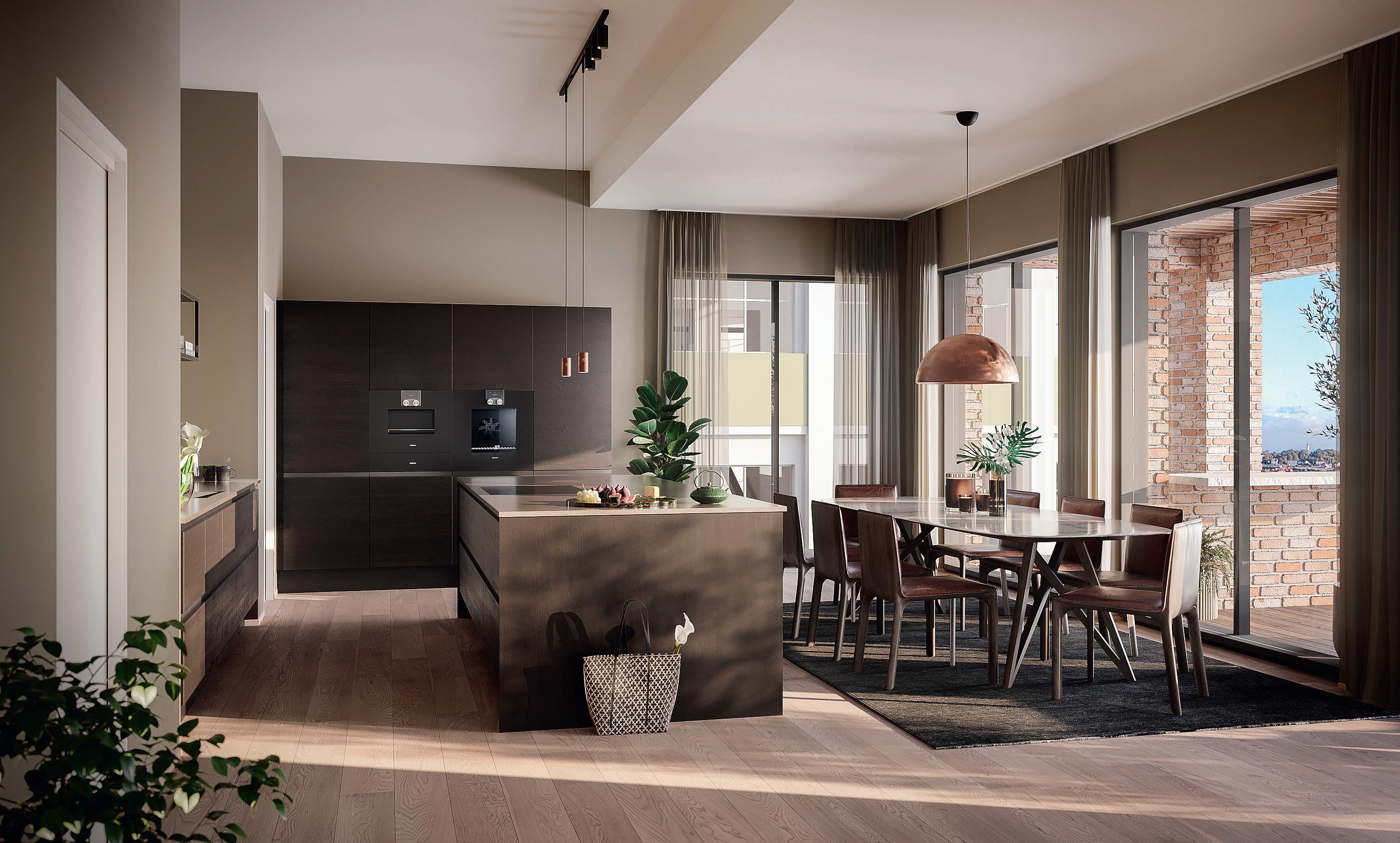 Alle leilighetene får åpen kjøkkenløsning som både skal være funksjonelt til matlaging og et elegant møbel som skaper trivsel og gode øyeblikk.