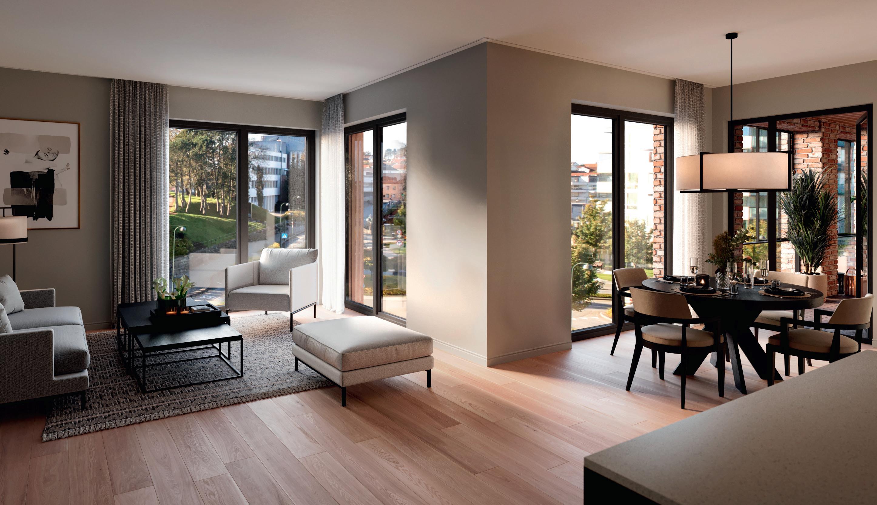 De 67 lekre leilighetene har eksklusive kvaliteter som sørger for komfortable hjem, med en behagelig atmosfære.