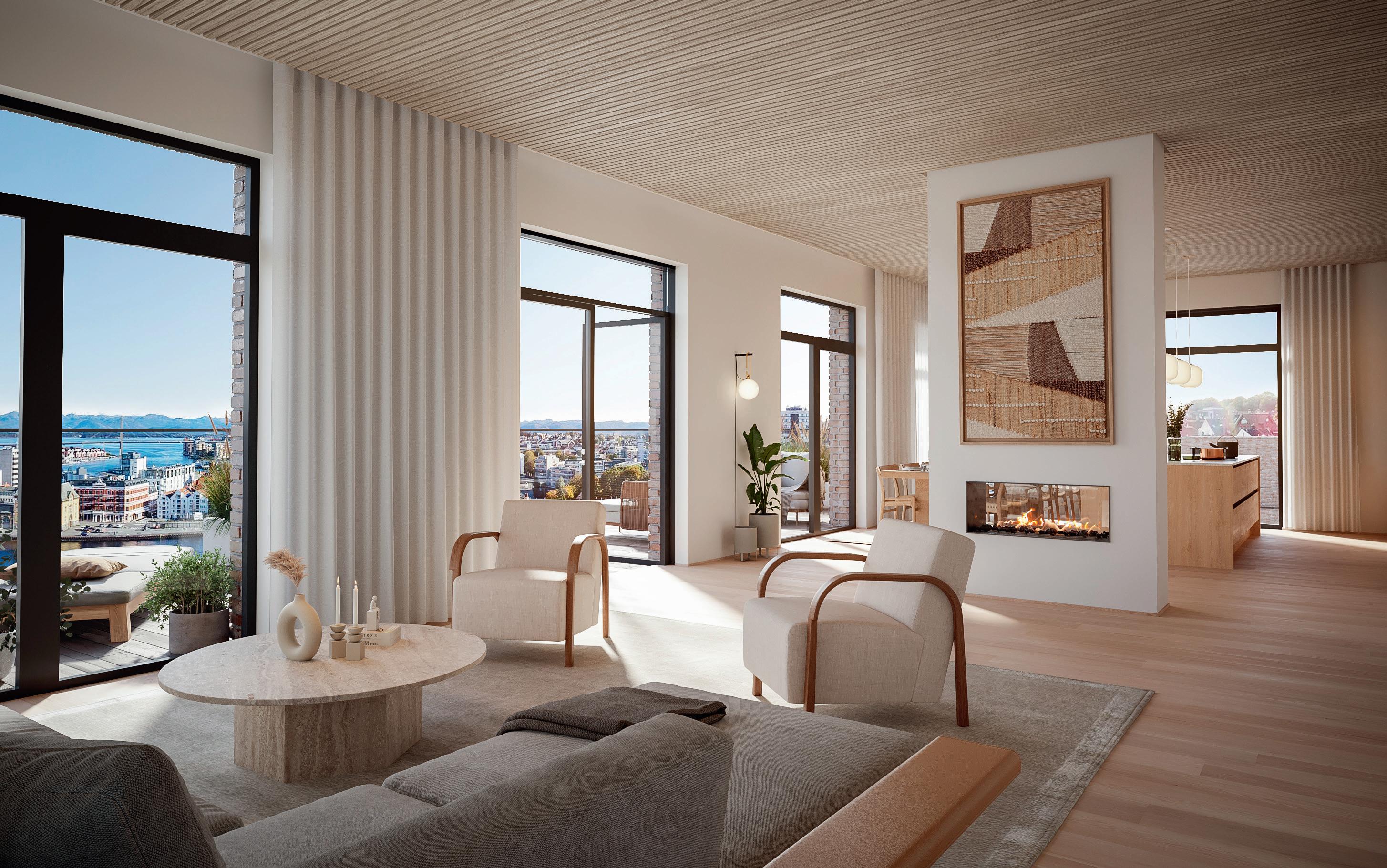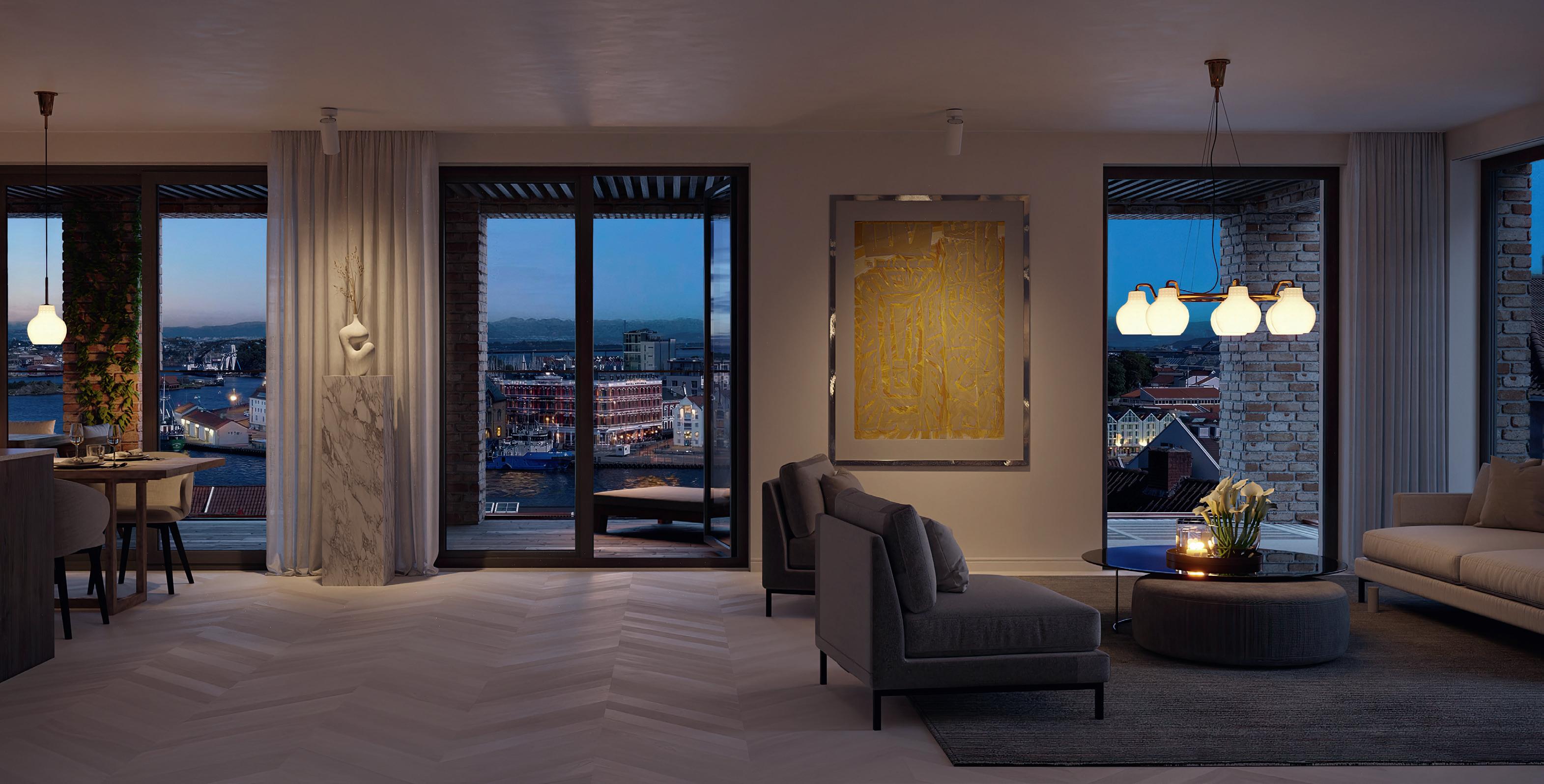 På toppen av bygg B2 finner du denne flotte leiligheten B2-601 med stor takterrasse. Her får du en unik utsikt mot Ryfylke og innseilingen til Stavanger. Vakrere utsikt enn dette skal en lete lenge etter.