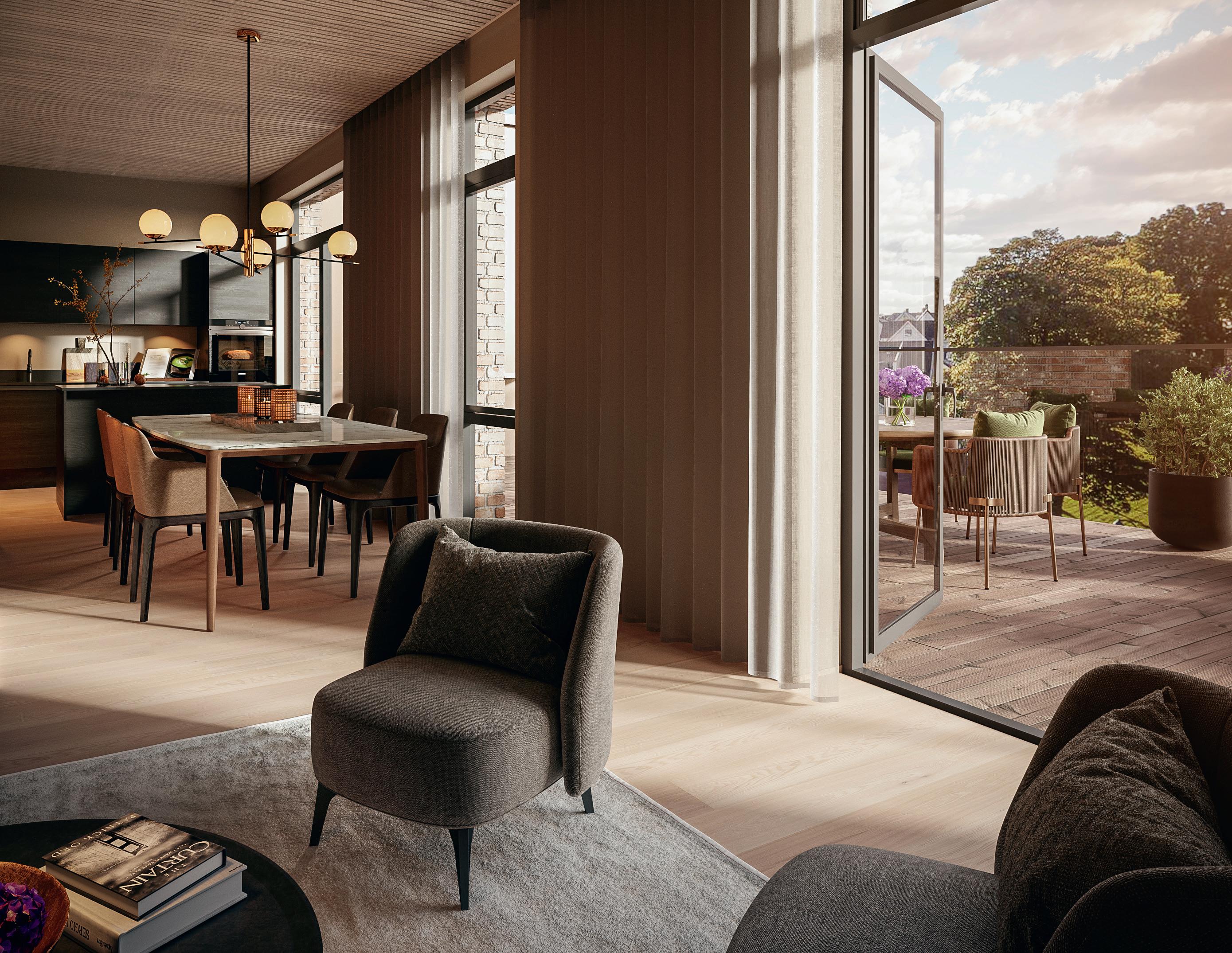 Og resultatet? Solide materialer, stilsikkert formspråk og boliger helt utenom det vanlige. Private uterom og fellesområder som inviterer til ro og rekreasjon eller sosiale sammenkomster med gode venner.