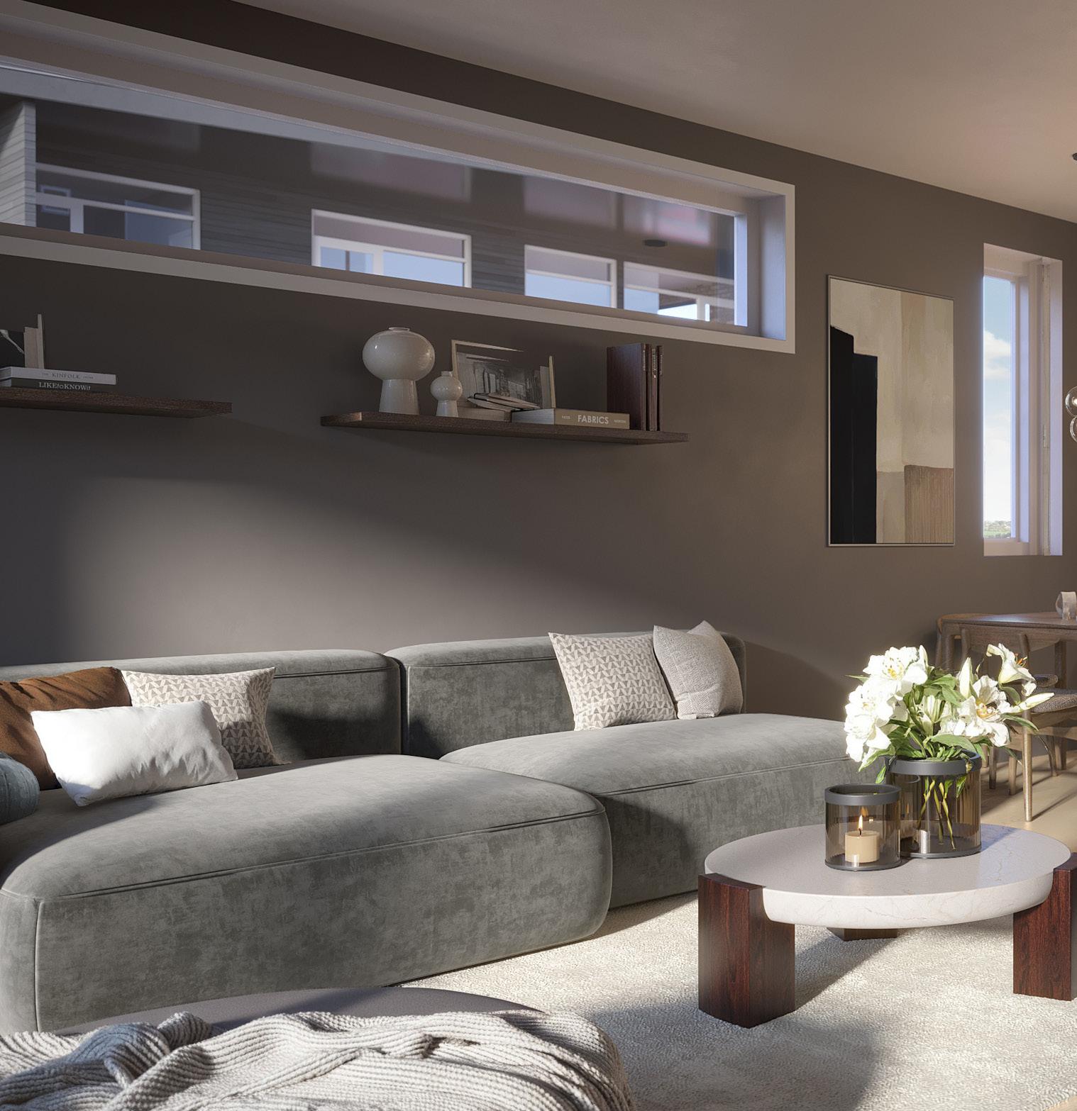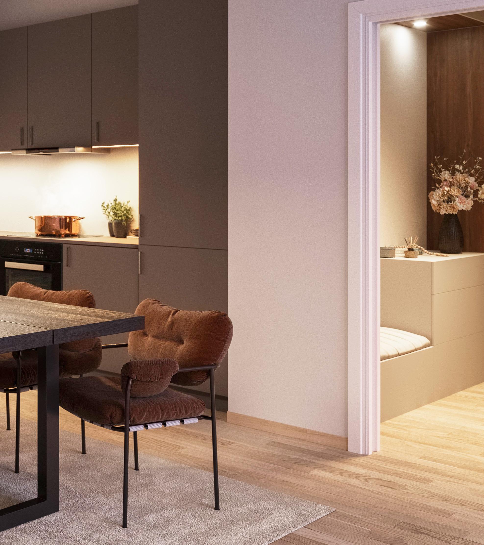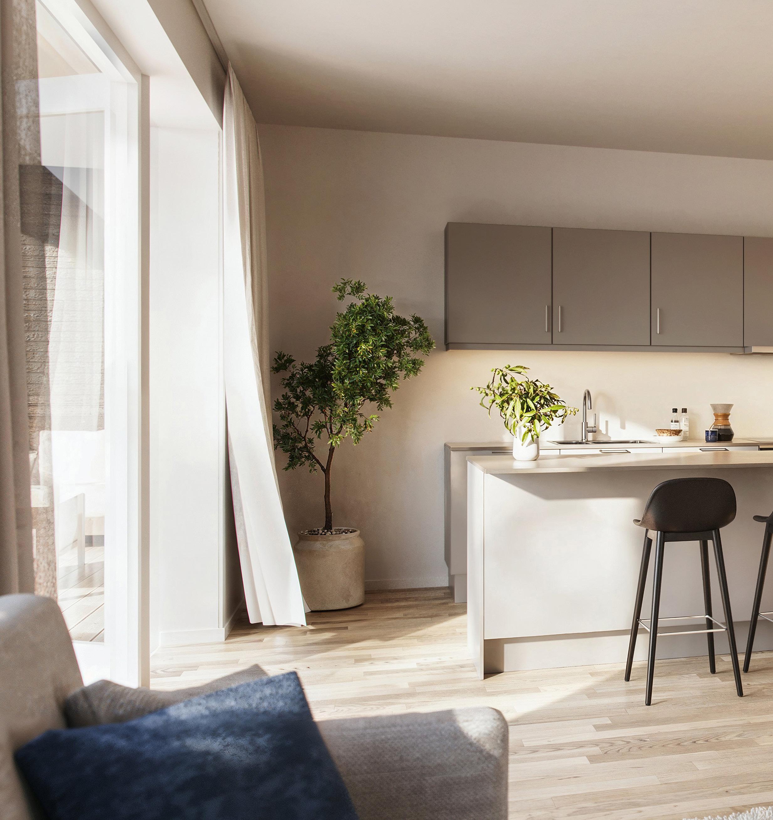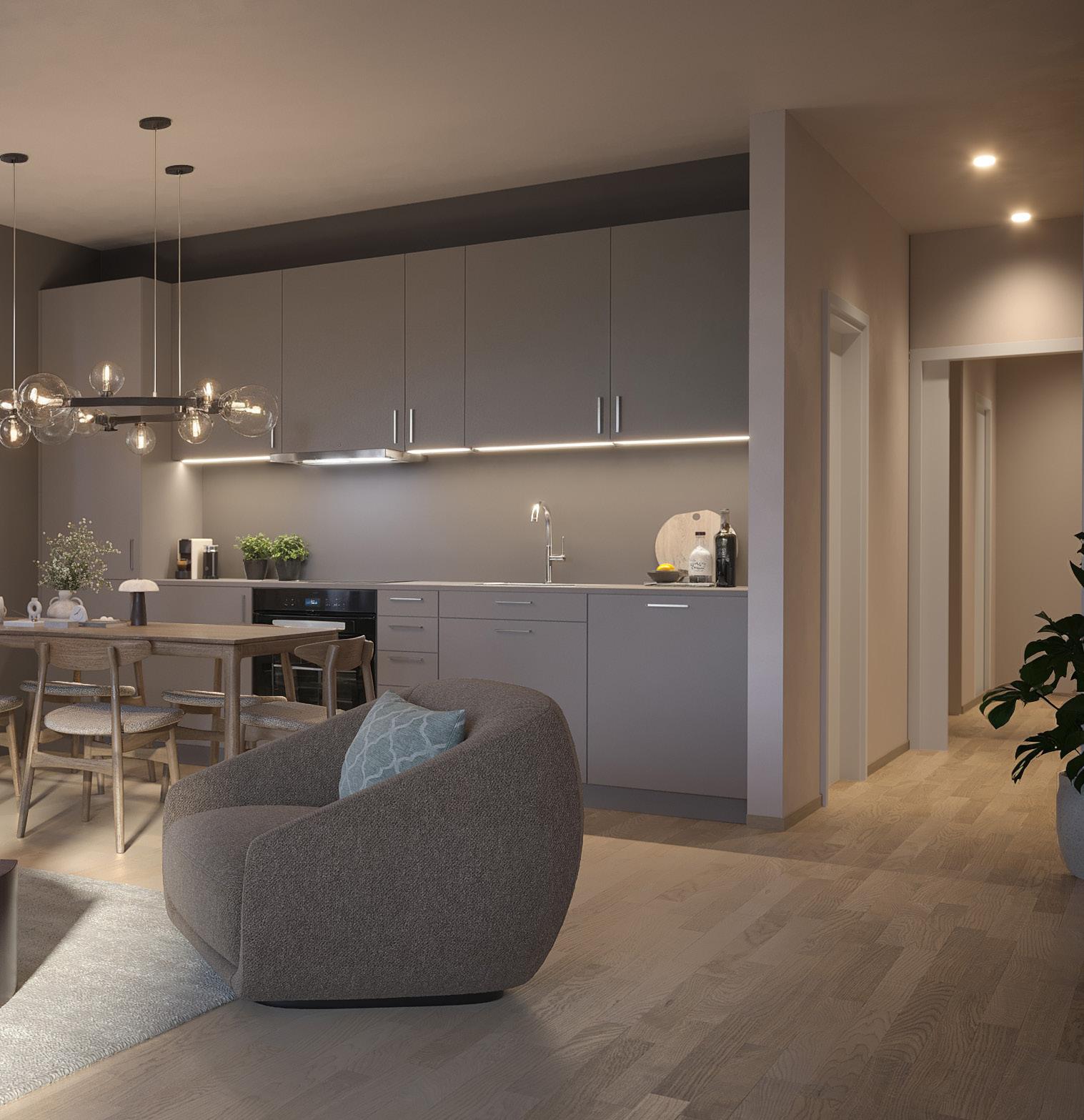 Når det gjelder interiørkvaliteten, vil alle leilighetene ha en standard som ligger over gjennomsnittet. Uansett størrelse vil du ha mange tilvalgsmuligheter, slik at du kan tilpasse leiligheten etter dine personlige preferanser og forme den akkurat slik du ønsker.