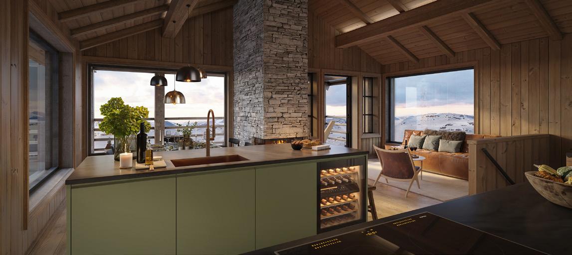 Samtidig har me hatt stor aktivitet på byggesida. Me har både levert hytter og er i gang med nye, og me har fått engasjert oss i heilt spesielle prosjekt. Alt frå eit lite tilbygg på 12 kvadratmeter som sette i gang ein full makeover av heile hytta, til ei ny storhytte i andre enden av skalaen, med peisar, eldhus og alt som høyrer ein skikkeleg lodge til.