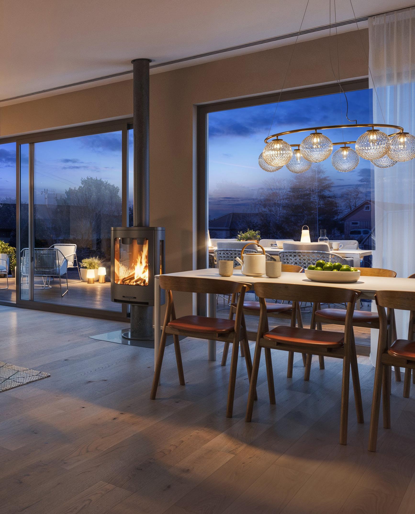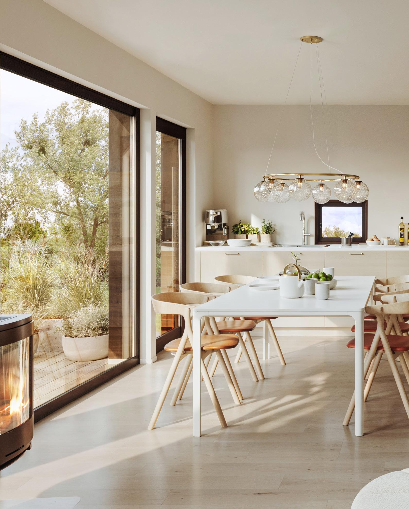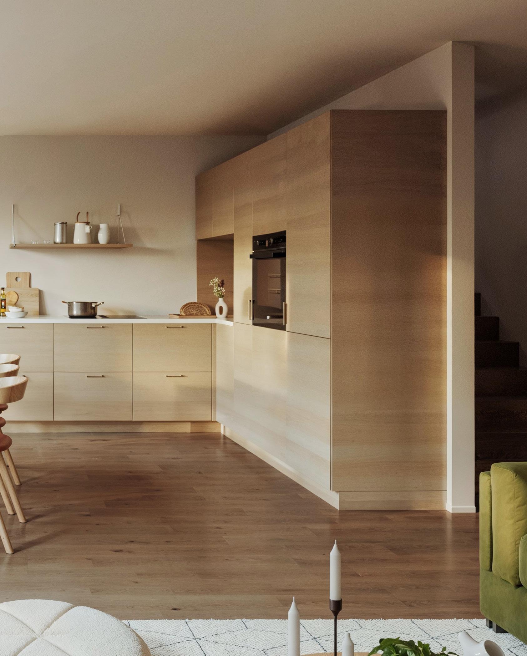 Se for deg late søndagsfrokoster rundt dette bordet med dem du er aller mest glad i. Det moderne kjøkkenet er mye mer enn bare et arbeidssted – det er et sted for å nyte den gode maten og de gode samtalene. I Vigrestadvegen 9 får kjøkkenet lune og varme fronter i Nordic eik fra Svane Kjøkkenet – en anerkjent leverandør kjent for sine lekre design og kvalitetsløsninger. Håndtakene i eik skaper en tydelig referanse til det klassiske snekkerkjøkkenet.