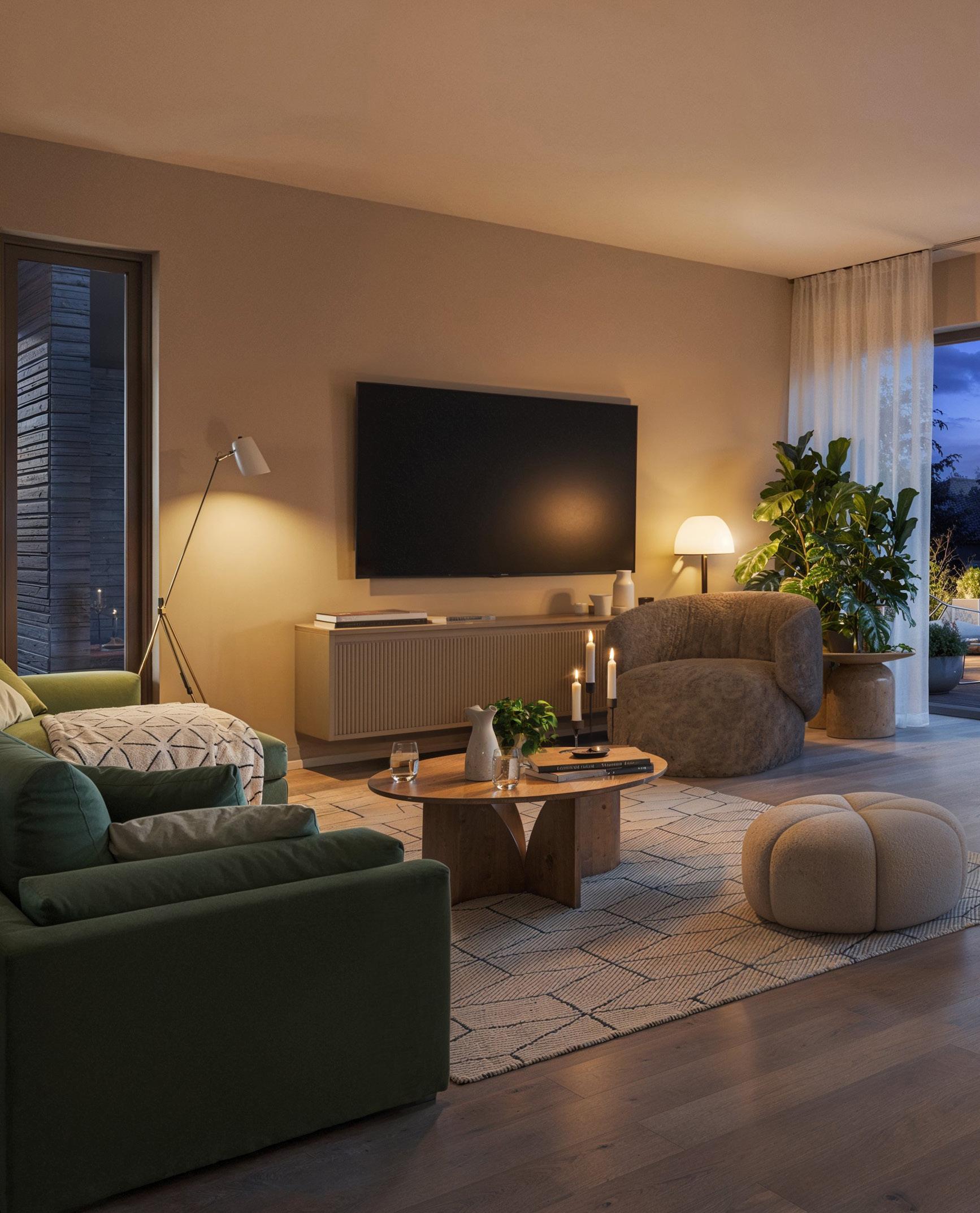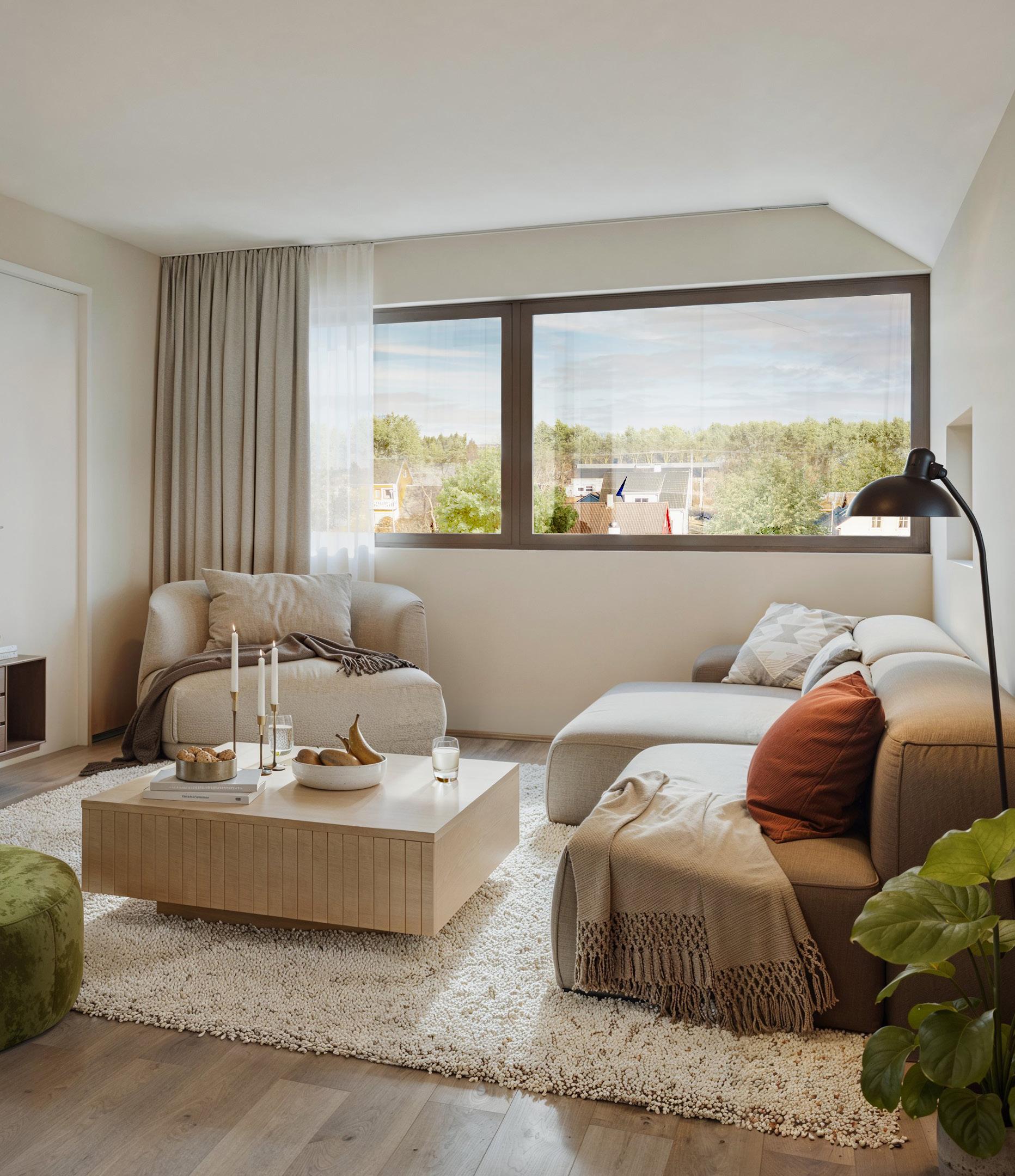 Markedsmateriell er ikke en del av kontraktsgrunnlaget. Alle 3D-illustrasjoner, perspektiver, tegninger og foto er kun ment å gi inntrykk av en ferdig bebyggelse og utendørsareal, og er ikke bindende for utformingen av endelig bebyggelse. Det kan inneholde elementer som ikke inngår i utbyggers leveranse, både når det gjelder utvendige forhold og innredning. All infomasjon er derfor gitt med forbehold om rett for utbygger til å foreta endringer. Endringene skal ikke ha innvirkning på satt standard. Dersom det er avvik mellom endelig leveransebeskrivelse og tegninger i prospektet, er det den endelige leveransebeskrivelsen som gjelder.