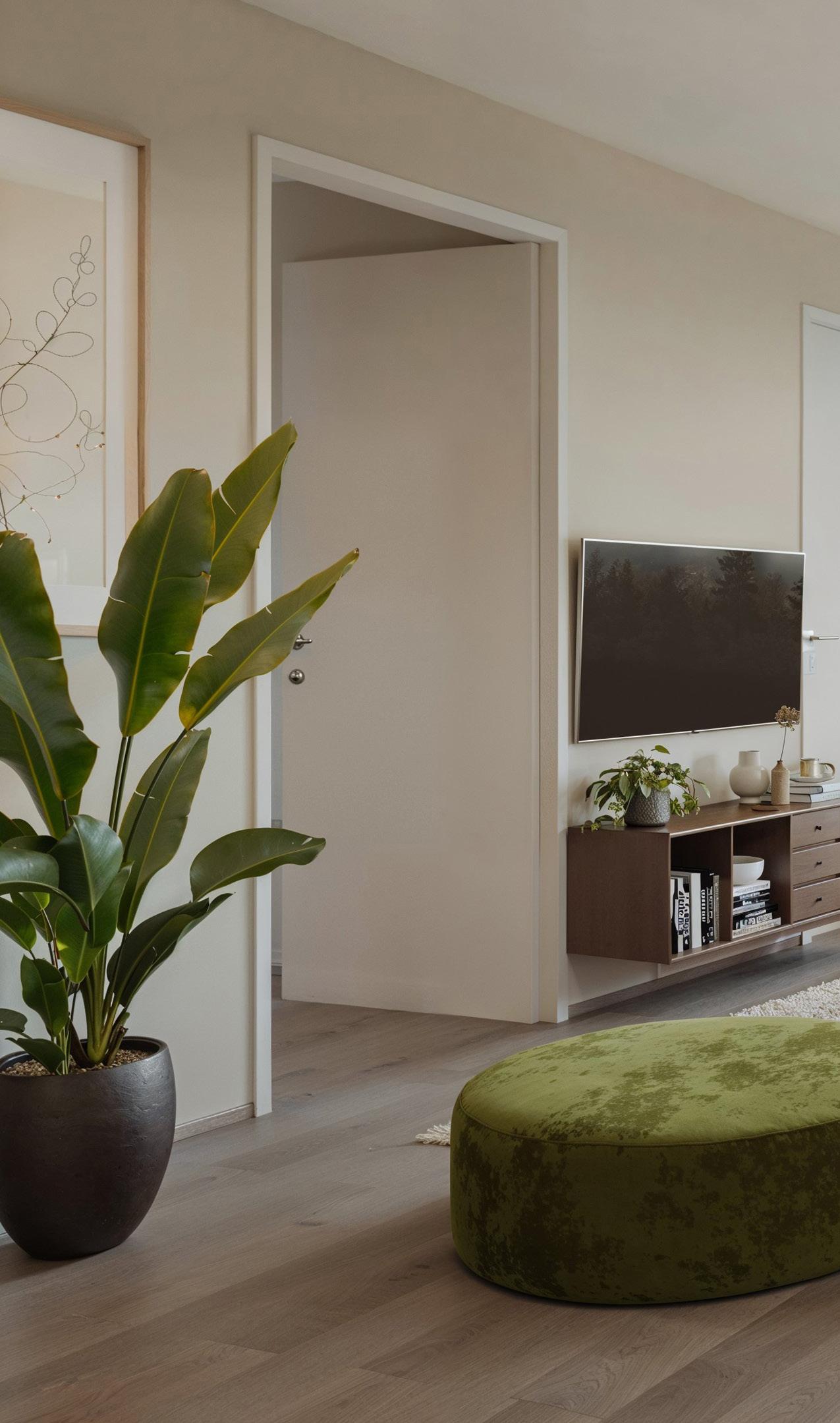 Tett og slett dørblad i standard farge etter arkitektens valg.