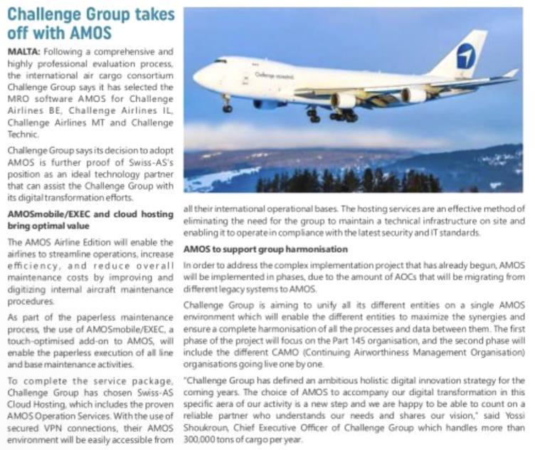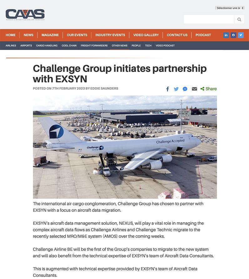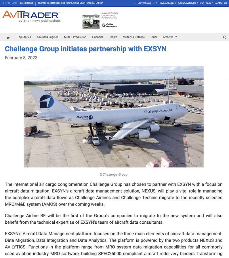 Challenge Group, EXSYN partner to manage aircraft data migration