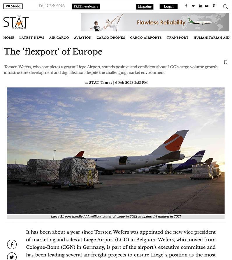 “[…]both our home carriers Challenge Airlines and ASL Belgium are constantly growing their presence in Liege. Challenge Airlines has just started a new twice weekly service to Istanbul and will introduce this year its new 767 freighter product which will enable new markets such as India to be connected with LGG.”
