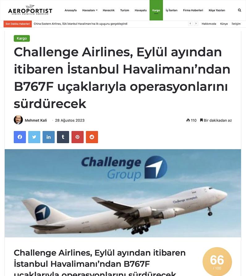 Challenge Airlines, Eylül ayından itibaren Istanbul Havalimanı’ndan