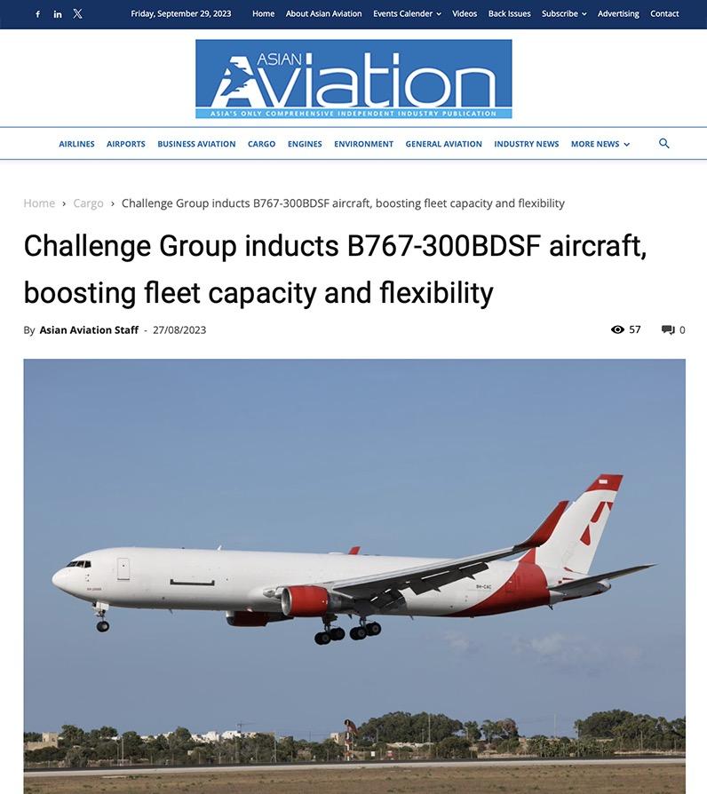 26 AUGUST 2023 READ THE ARTICLE Challenge Group welcomes 1st B767-300ERBDSF