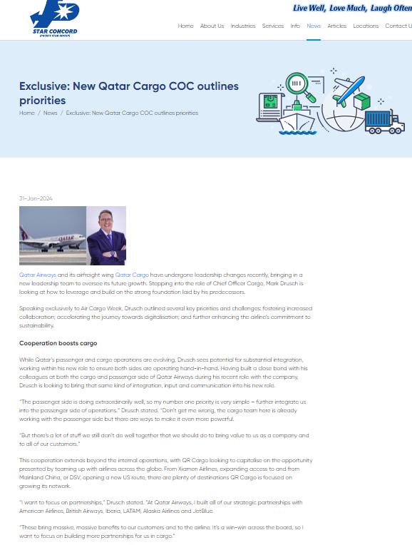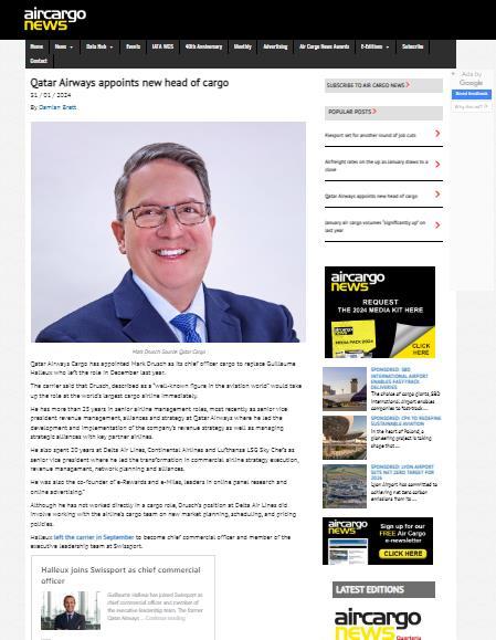 NEW CARGO BOSS IS PROMOTED FROM WITHIN QATAR AIRWAYS 31 JANUARY 2024 READ THE ARTICLE