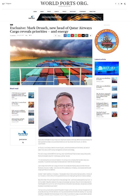 EXCLUSIVE: MARK DRUSCH, NEW HEAD OF QATAR AIRWAYS CARGO REVEALS PRIORITIES – AND ENERGY 31 JANUARY 2024 READ THE ARTICLE
