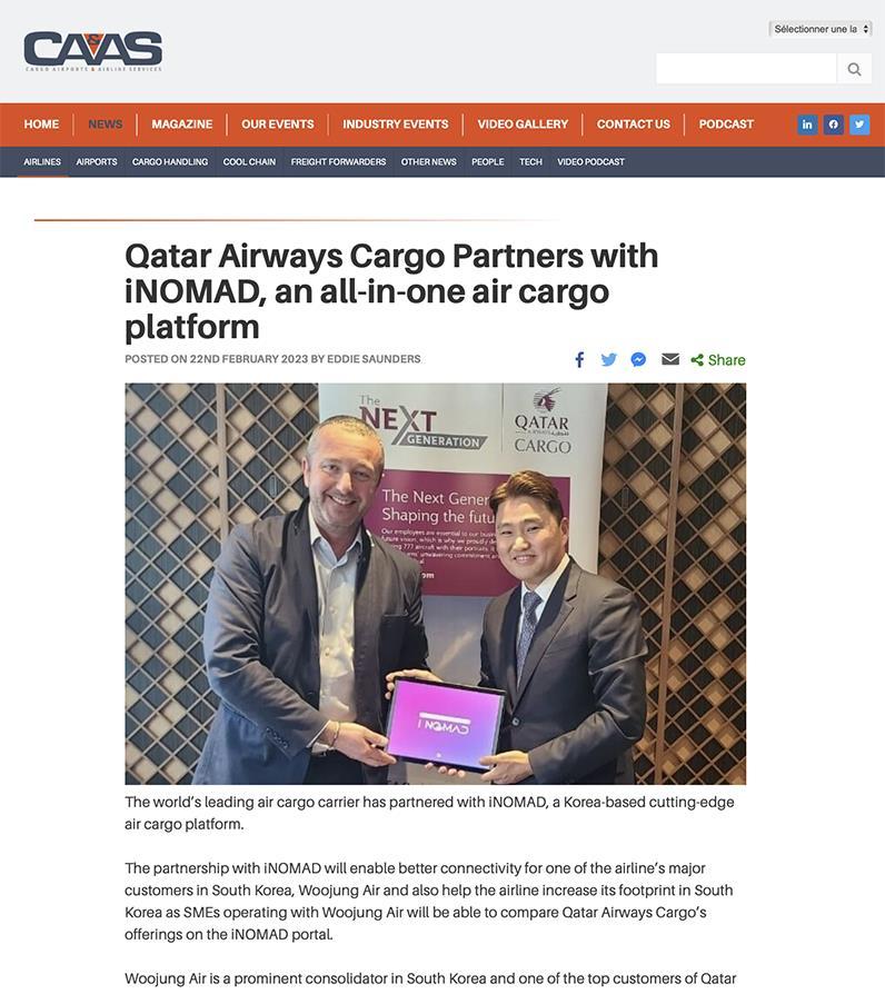 22 February 2023 READ THE ARTICLE Qatar Airways Cargo Partners with iNOMAD, an All-in-One Air Cargo Platform