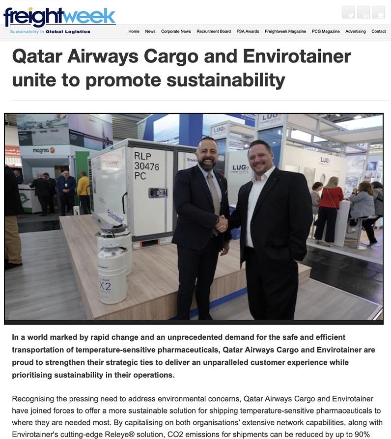 29 May 2023 READ THE ARTICLE Qatar Airways Cargo and Envirotainer unite to promote sustainability