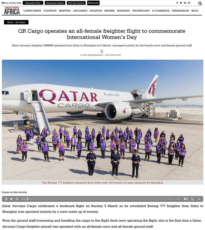 READ THE ARTICLE QR Cargo operates all-female freighter QR8960 08 March 2023