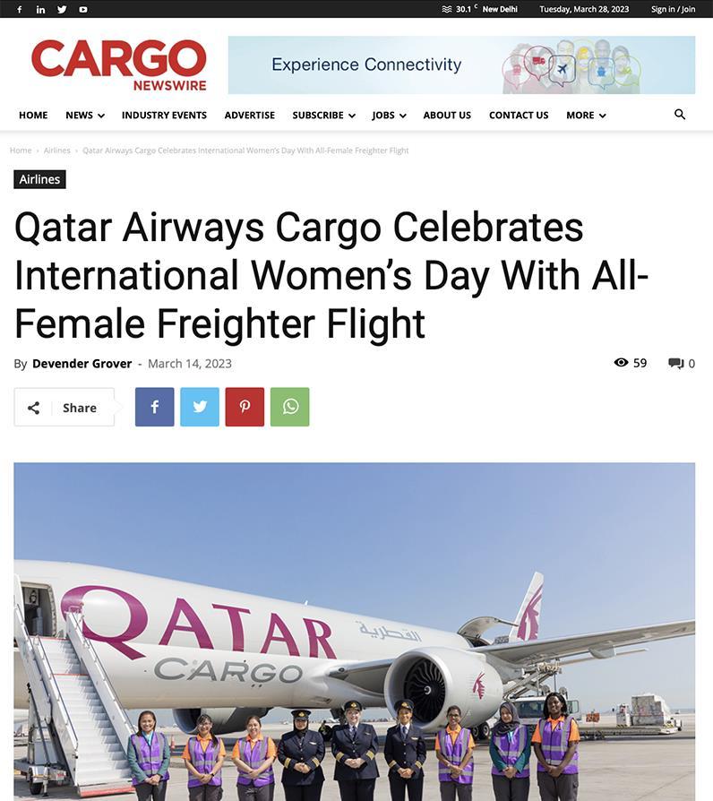 Qatar Airways marks International Women’s Day with all-female freighter crew READ THE ARTICLE 08 March 2023