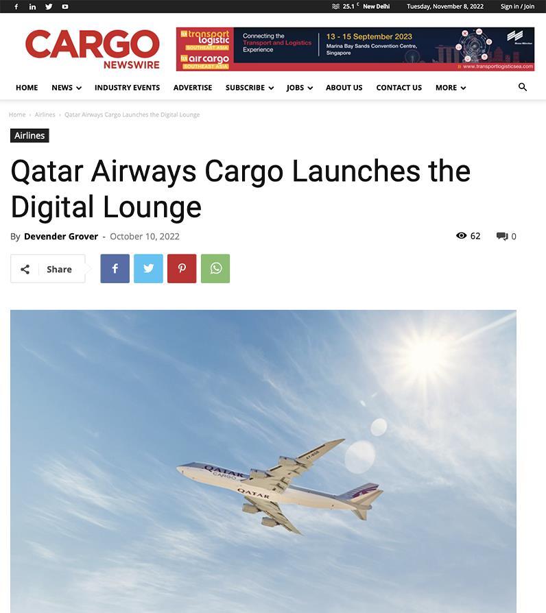PRESS RELEASE QATAR AIRWAYS CARGO LAUNCHES THE DIGITAL LOUNGE SAMPLE OF THE 102 ARTICLES PUBLISHED