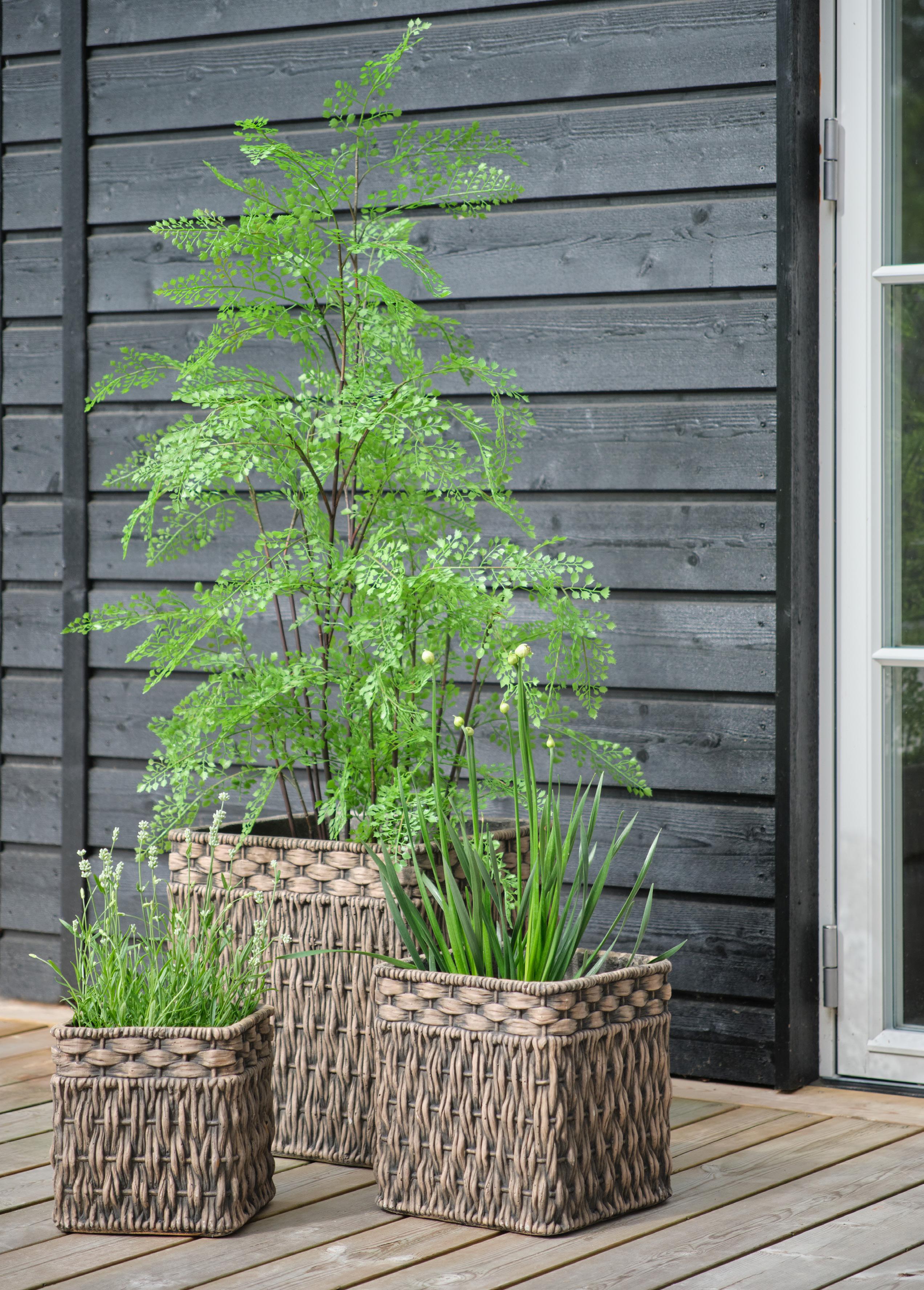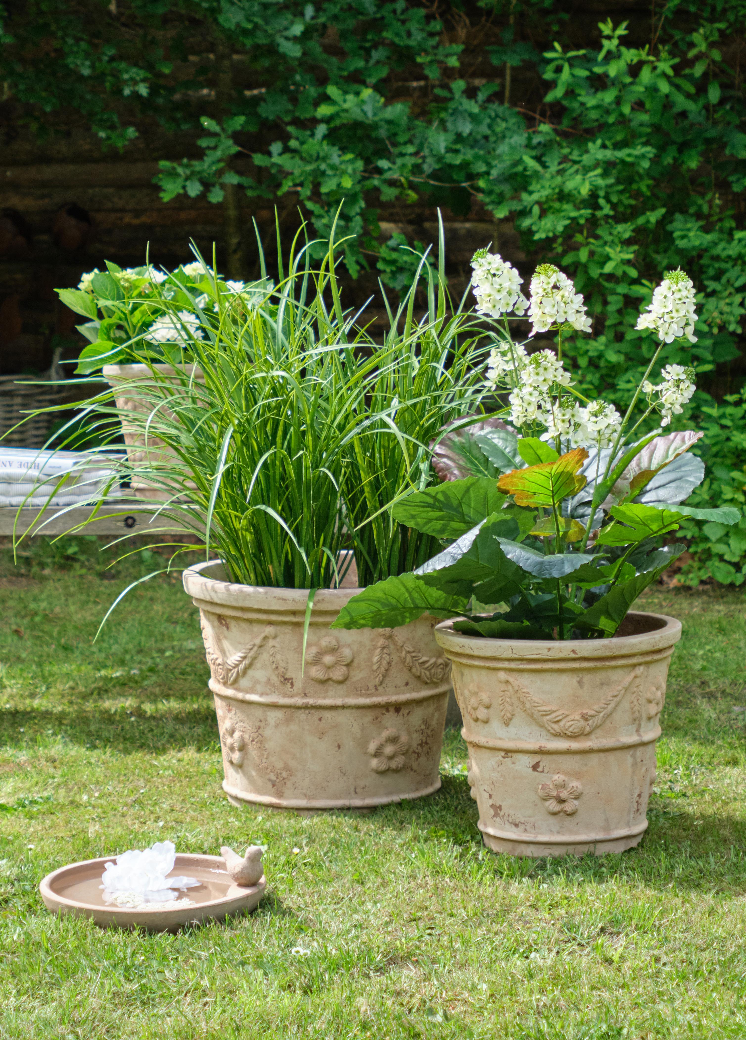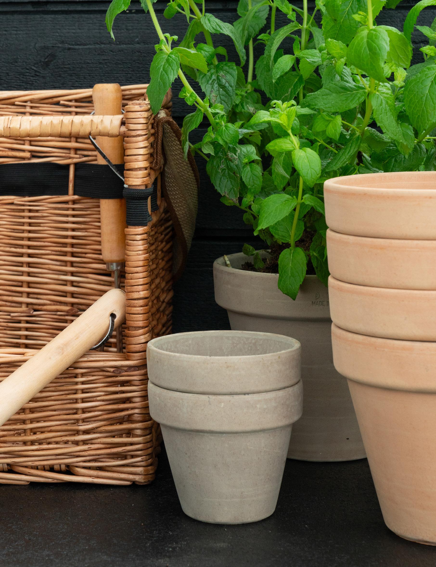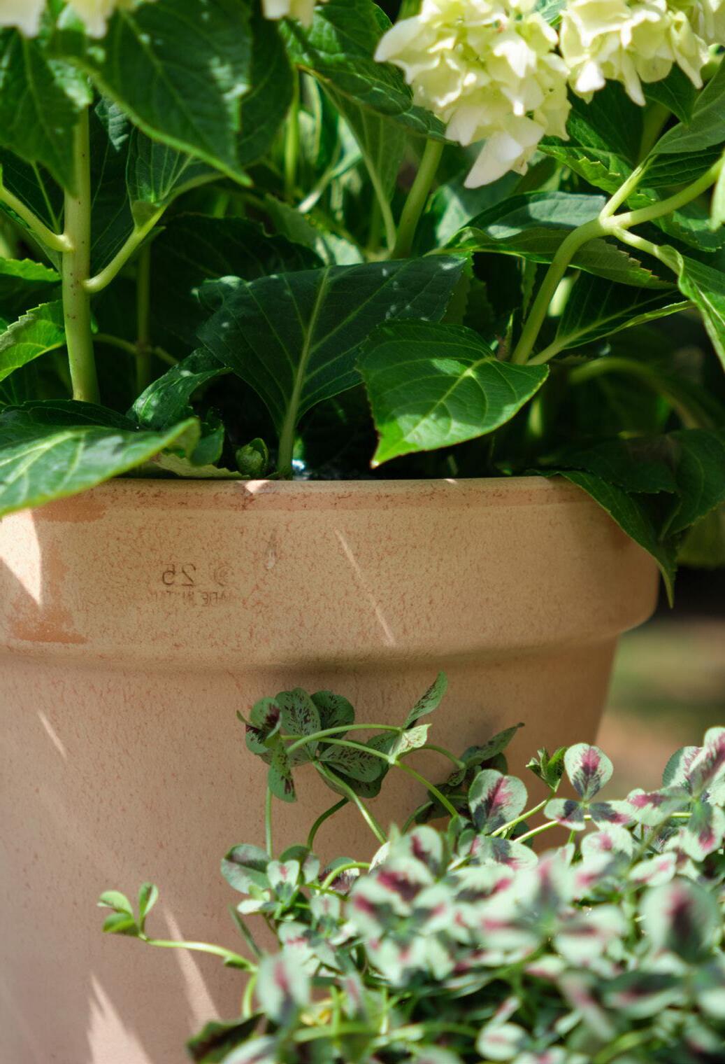 To protect your plants and pots, keep the drainage hole clear and fill the bottom with 1/3 Leca to improve drainage and create a healthy environment. The pots can stay outside all year. However, to extend their lifespan, we’ve included some winter care tips on the next page.