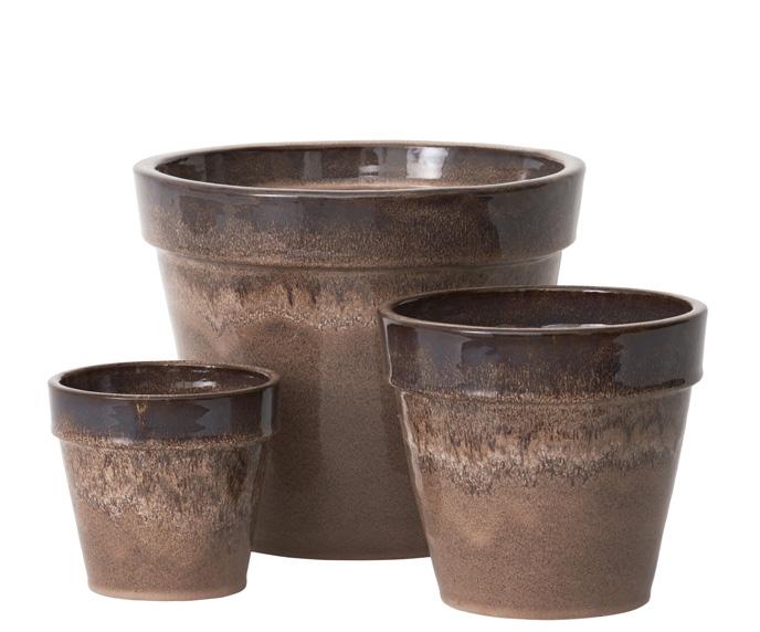 Each pot features a drainage hole and is resistant to both UV, heat and frost. Many are handmade, so slight variations in glazing and color may occur.
