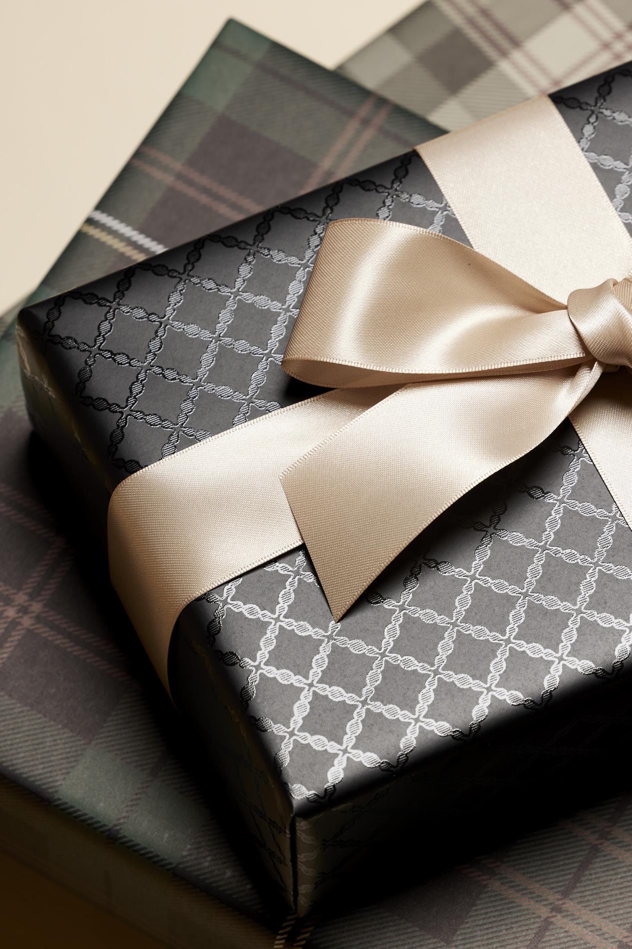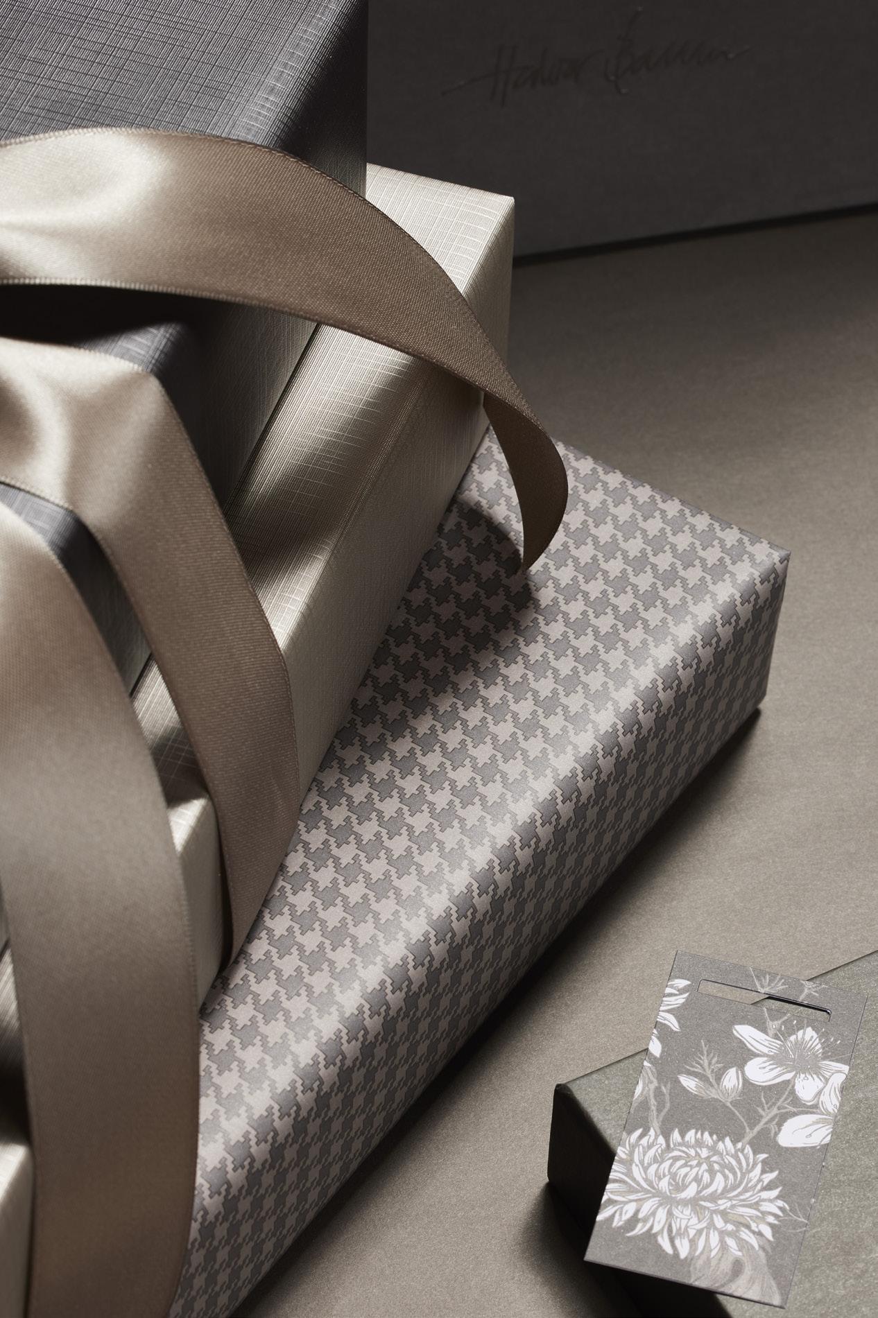 The Halvor Bakke Collection includes gift wrapping papers, a gift bag, and matching ribbons.