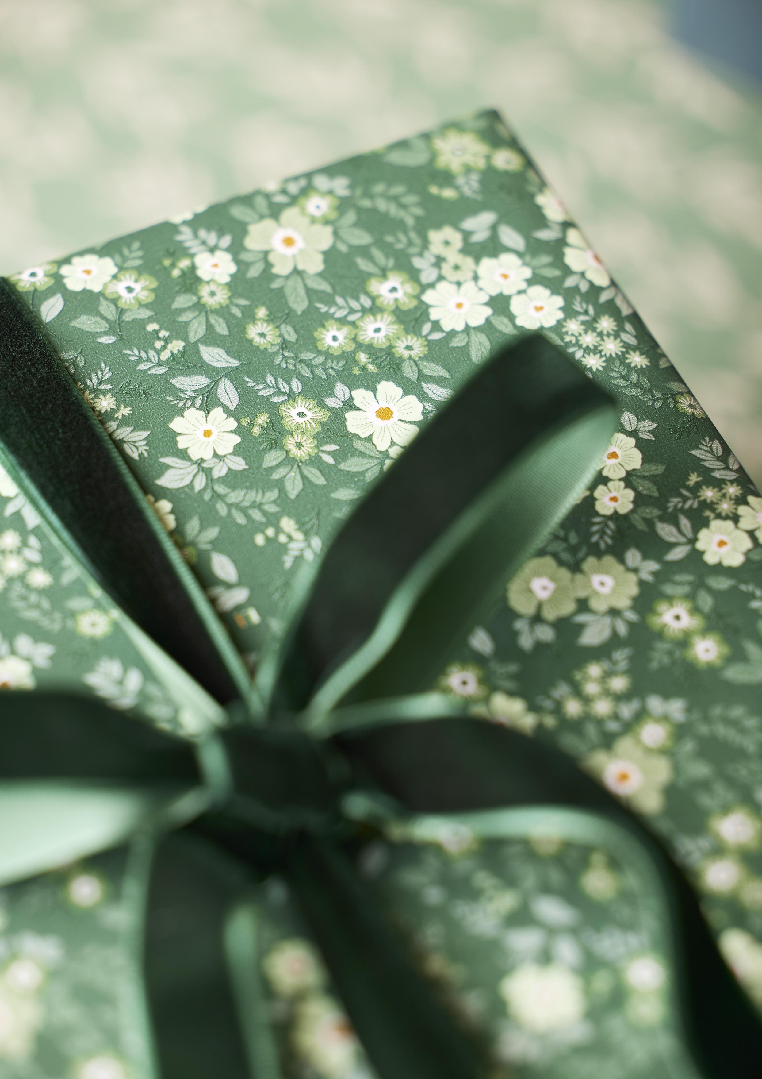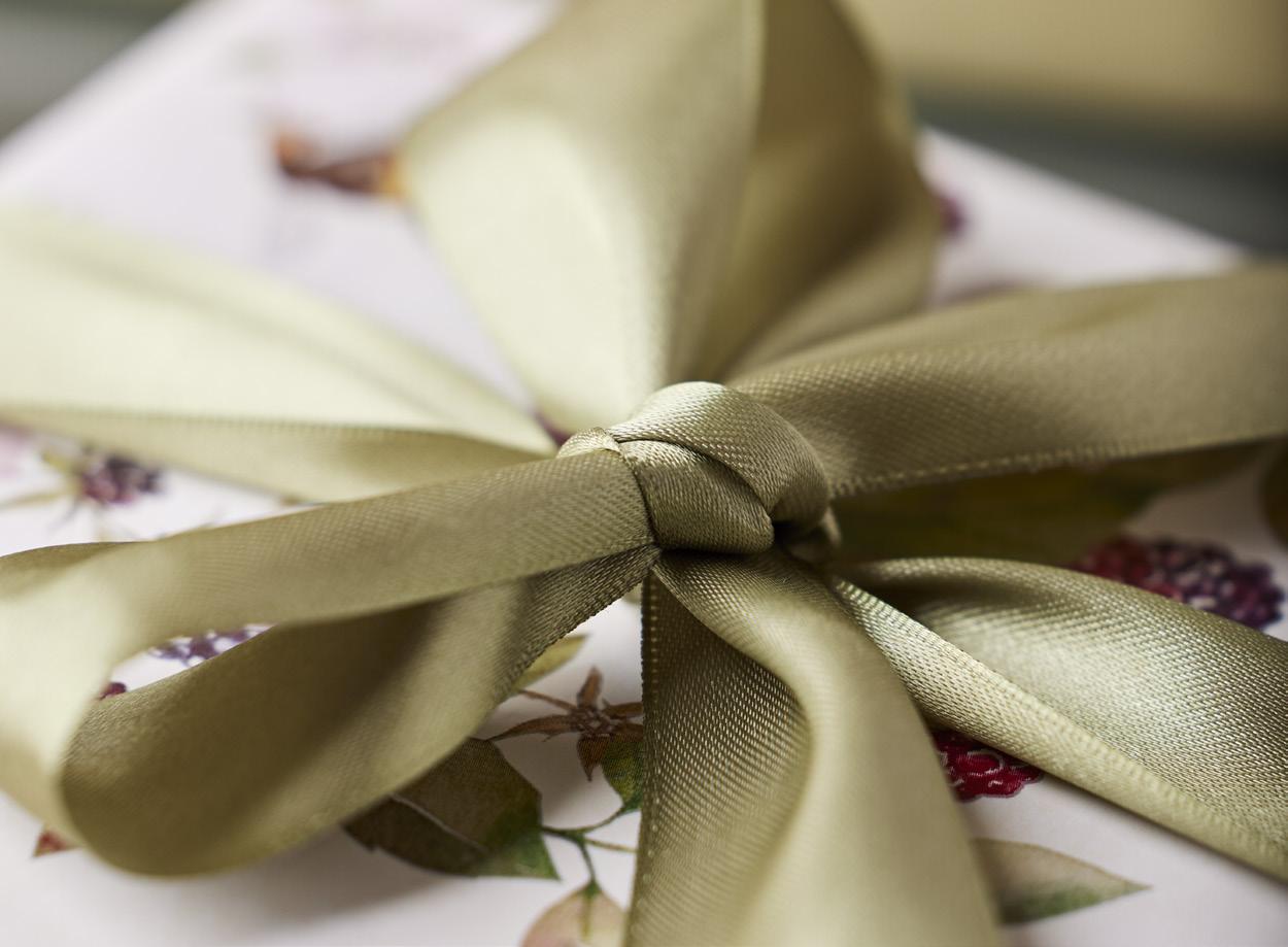 Wide ribbons add a luxurious touch. Satin ribbon, sage green (724023).