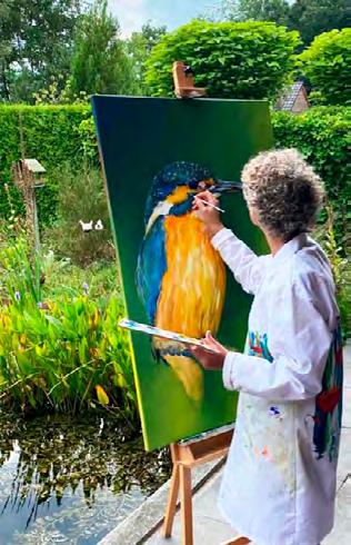 ‘We vinden het mooi en het is een kroon op mijn werk als iemand een schilderij koopt. We hebben een website, staan op beurzen en doen mee aan een kunstroute. Het is bevredigend om ze van eigenaar te laten verwisselen. Er komen steeds weer nieuwe/ andere schilderijen bij. Ik stop niet meer met schilderen. Ik zoek een afbeelding van bijvoorbeeld een dier en maak daar mijn eigen interpretatie van. Ik had laatst een wolf gemaakt. De verf is dan amper droog of ik heb hem alweer verkocht. Ik kan me niet meer een leven voorstellen zonder schilderen. Het is echt een way of live geworden.‘