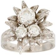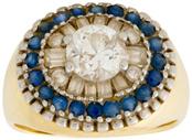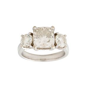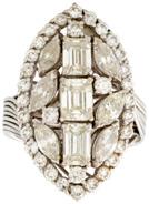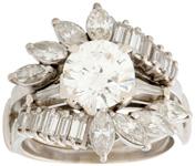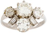 Centring a claw-set round brilliant-cut diamond weighing approximately 1.50 carats, flanked by six claw-set round brilliant-cut diamonds with four further claw-set tapered baguette-cut diamonds and two baguette cut diamonds, the diamonds together weighing approximately 4.50 carats, size P, gross weight approximately 13.8 grams.