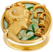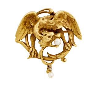 This collection features several noteworthy pieces, including an 1880s Goldfields brooch adorned with vine motifs (lot 217), a rare jewel rich in history for the discerning collector. For lovers of diamonds, a beautiful ring set with a 4.15-carat round diamond shines in lot 274. Gracing our cover is an antique necklace by Gilbert Albert for Omega, a striking gold and pearl design that exemplifies his distinctive, unconventional, and richly textured style (lot 206). The collection also presents a private selection of bespoke Art Deco to mid-century designs, each piece capturing the glamour and elegance of its era (lots 101–153).