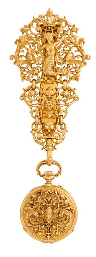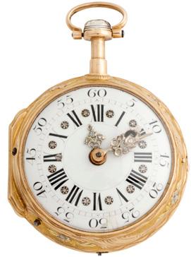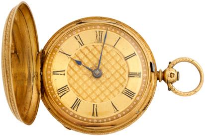 Dial: wave patterned gilt, baton quarters, pointed baton hands