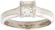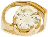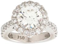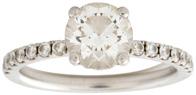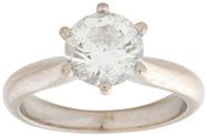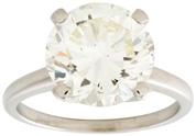Centring a four claw-set round brilliant-cut diamond weighing approximately 3.85 carats, with a curved scroll detail to a rounded shank, size J1/2, gross weight approximately 7.6 grams.