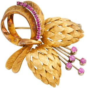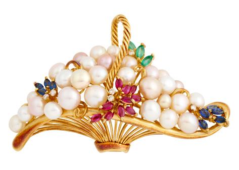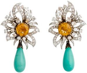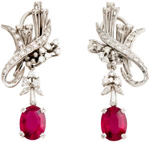 As always, we are drawn to an array of designer signed pieces, including a Russian Spirit pendant by Lancon for Paspaley (lot 167), a beautiful ruby and diamond dress ring (lot 318), and of particular interest is lot 246, a suite of mid-century Australian made diamond earrings with ten gem set variations of enhancers that integrate to the earrings.