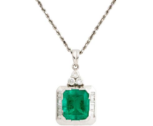 18CT WHITE GOLD, DIAMOND AND EMERALD PENDANT