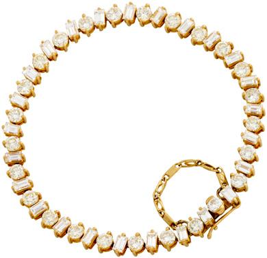 A line bracelet of forty-six claw-set round brilliantcut diamonds to a box clasp with two clips, the diamonds together weighing approximately 4.00 carats, length approximately 175mm, gross weight approximately 16.9 grams.