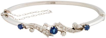 15CT WHITE GOLD, SAPPHIRE AND DIAMOND BANGLE