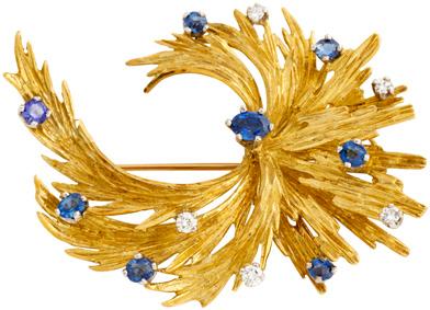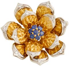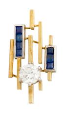 18CT TWO-TONE GOLD, SAPPHIRE AND DIAMOND BROOCH