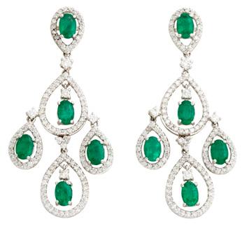 18CT WHITE GOLD, DIAMOND AND EMERALD BANGLE