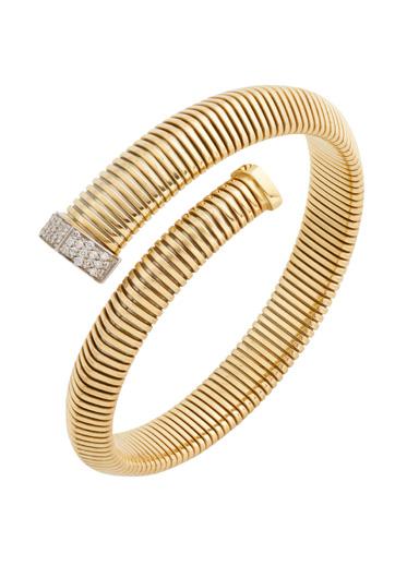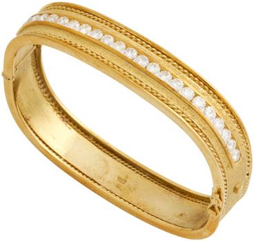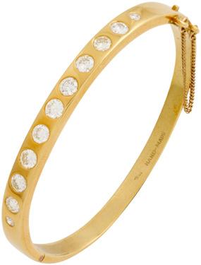 Oval hinge style with eleven gypsy-set diamonds across the upper band to a box clasp with safety chain, the diamonds together weighing approximately 2.31 carats, internal diameter approximately 60mm, gross weight approximately 22.0 grams.
