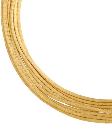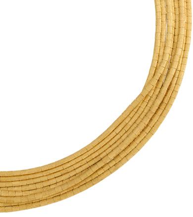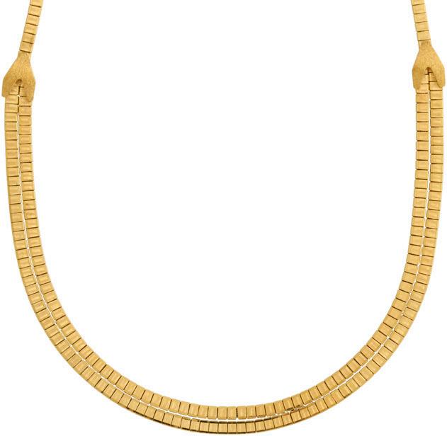 A gold necklace of eight strands of rectangular satin gold serpentine links to an insert clasp and clip, length approximately 460mm, gross weight approximately
